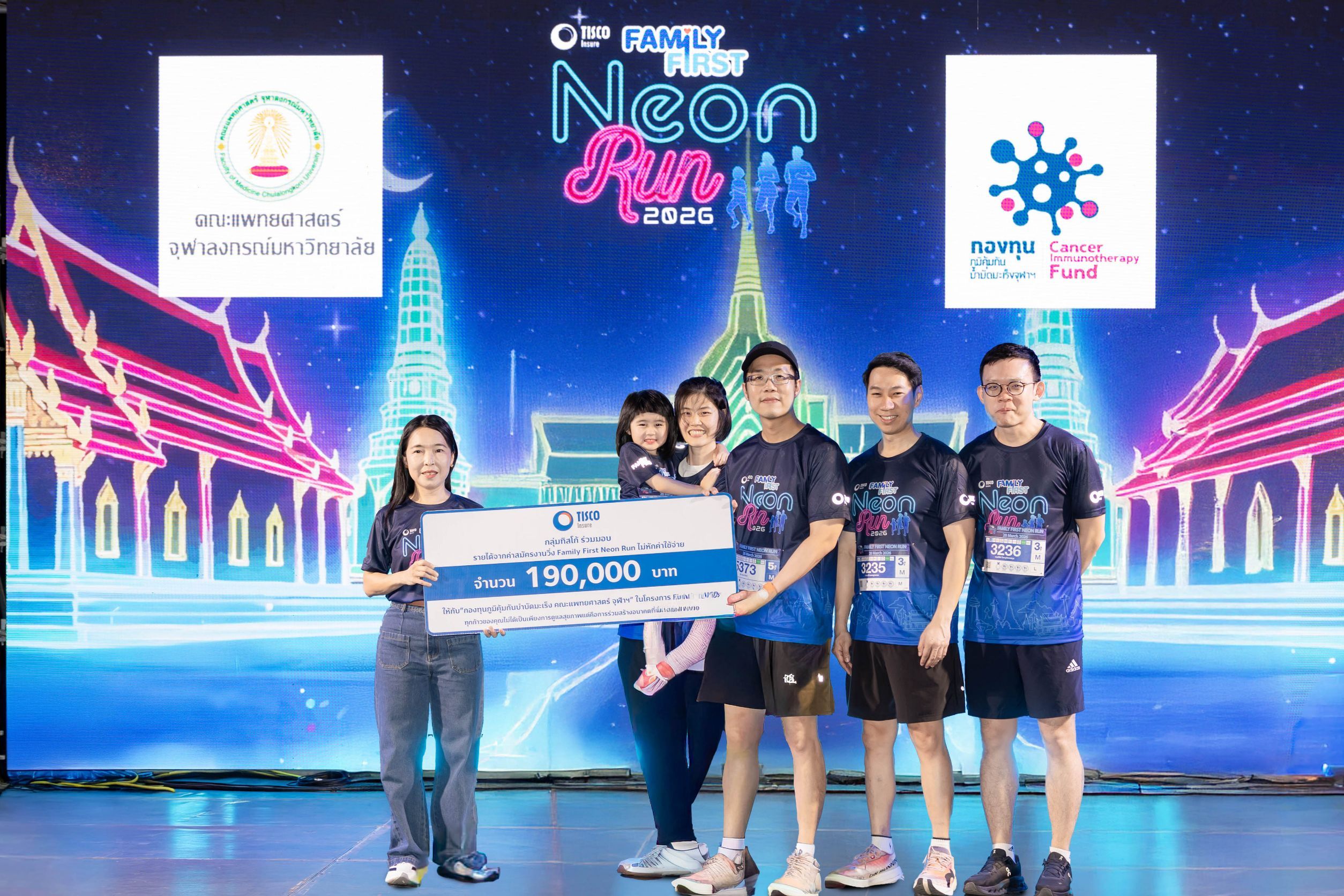 กลุ่มทิสโก้ ร่วมกับ พันธมิตรบริษัทประกัน 12 แห่ง จัดกิจกรรมวิ่งการกุศล "Family First Neon Run 2026" ซึ่งได้รับความสนใจจากครอบครัวกว่า 1,500 คน ที่มาร่วมสัมผัสบรรยากาศแห่งความสุข สนุกสนาน และความทรงจำดี ๆ ท่ามกลางแสงนีออนยามค่ำคืน ณ เมืองโบราณ จังหวัดสมุทรปราการ พร้อมนำรายได้จากการจำหน่ายบัตรโดยไม่หักค่าใช้จ่าย มอบให้ “กองทุนภูมิคุ้มกันบำบัดมะเร็ง คณะแพทยศาสตร์ จุฬามหาวิทยาลัย” เพื่อสนับสนุนการรักษาผู้ป่วยในโครงการ Fighting NCDs โดยมี นางกุสุมา ประถมศรีเมฆ ผู้ช่วยกรรมการผู้จัดการใหญ่อาวุโส บริษัท ทิสโก้ไฟแนนเชียลกรุ๊ป จำกัด (มหาชน) พร้อมด้วยผู้บริหารจากบริษัทพันธมิตร ร่วมต้อนรับผู้เข้าร่วมงานทุกครอบครัว