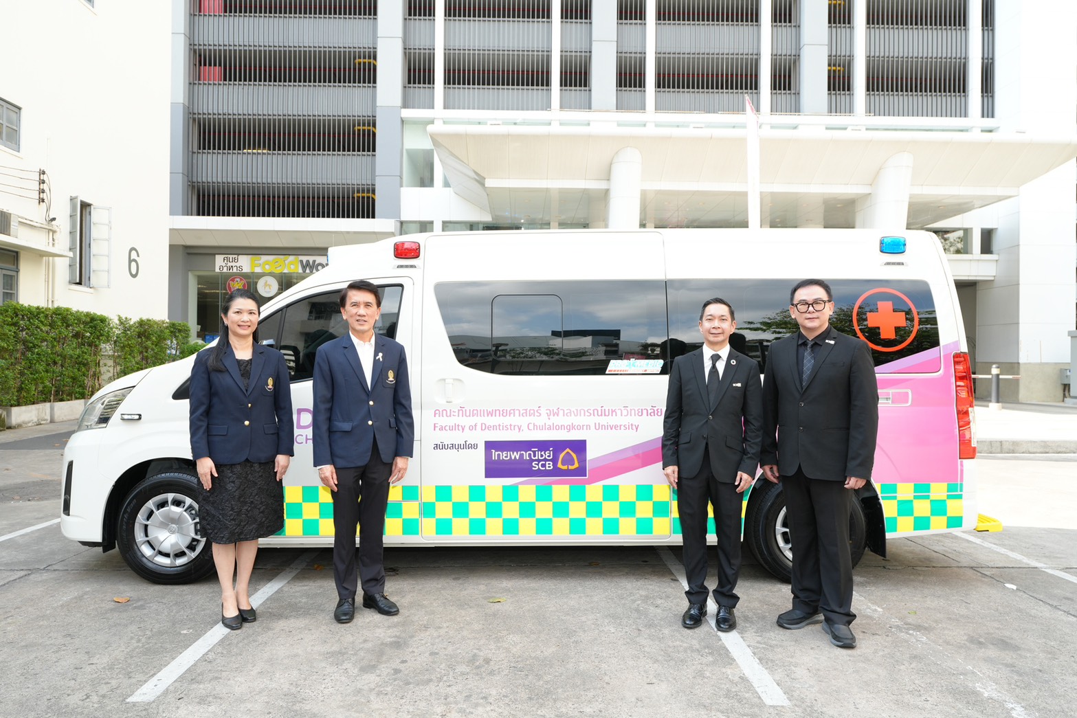 กลุ่มเอสซีบีเอกซ์โดยธนาคารไทยพาณิชย์ จำกัด (มหาชน) สนับสนุนภารกิจด้านการแพทย์และสาธารณสุขเพื่อเสริมสร้างคุณภาพชีวิตที่ดี ส่งมอบรถพยาบาลให้แก่คณะทันตแพทยศาสตร์ จุฬาลงกรณ์มหาวิทยาลัย โดยมี นายวรวัจน์ สุวคนธ์ Chief People Officer ธนาคารไทยพาณิชย์ ส่งมอบรถพยาบาล จำนวน 1 คัน มูลค่า 2,500,000 บาท ให้แก่ ศาสตราจารย์ ทันตแพทย์ ดร.พรชัย จันศิษย์ยานนท์ คณบดีคณะทันตแพทยศาสตร์ จุฬาลงกรณ์มหาวิทยาลัย ณ คณะทันตแพทยศาสตร์ จุฬาลงกรณ์มหาวิทยาลัย
