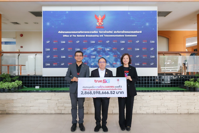 นายสุทธิศักดิ์ ตันตะโยธิน รองเลขาธิการคณะกรรมการกิจการกระจายเสียง กิจการโทรทัศน์ และกิจการโทรคมนาคมแห่งชาติ (รองเลขาธิการ กสทช.) สายงานกิจการโทรคมนาคม รับมอบเงินประมูลคลื่นความถี่ สำหรับกิจการโทรคมนาคม ย่าน 2600 MHz ช่วงความถี่วิทยุ 2600 - 2690 MHz งวดที่ 3 จากบริษัท ทรู มูฟ เอช ยูนิเวอร์แซล คอมมิวนิเคชั่น จำกัด (TUC) เป็นเงินจำนวน 2,868,598,666.52 บาท รวมภาษีมูลค่าเพิ่ม โดยสำนักงาน กสทช. จะรีบนำส่งเงินดังกล่าวให้กระทรวงการคลังเพื่อเป็นรายได้ของแผ่นดินต่อไป