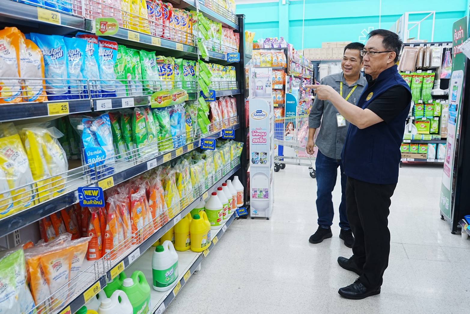 นายพูนพงษ์ นัยนาภากรณ์ อธิบดีกรมพัฒนาธุรกิจการค้า กระทรวงพาณิชย์พาณิชย์ เปิดเผยว่า “จากที่ได้ลงพื้นที่ตรวจความพร้อมของห้างโมเดิร์นเทรดที่เข้าร่วมโครงการไทยช่วยไทยเมื่อวานที่ผ่านมา (วันจันทร์ที่ 30 มีนาคม 2569) ตามข้อสั่งการของรัฐมนตรีว่าการกระทรวงพาณิชย์ (นางศุภจี สุธรรมพันธุ์) พบว่า ห้างโมเดิร์นเทรดที่เข้าร่วมโครงการฯ ทั้ง 4 ห้าง ได้แก่ แม็คโคร โลตัส ท็อปส์ และ GO Wholesale มีความพร้อม 100% โดยได้เตรียมสินค้าอุปโภค-บริโภคที่จำเป็นในชีวิตประจำวันทั้งสินค้ากลุ่ม House Brand และกลุ่มแบรนด์ทางเลือก (Second-tier Brand) ไม่น้อยกว่า 1,000 รายการ เข้าร่วมโครงการฯ ทั้งสินค้าอุปโภค : สบู่ แชมพู ผงซักฟอก ยาสีฟันฯ และ สินค้าบริโภค : ข้าวสาร น้ำตาล น้ำปลา น้ำมันพืช ซอสปรุงรส บะหมี่กึ่งสำเร็จรูป อาหารกระป๋องฯ และพร้อมอำนวยความสะดวกประชาชนที่เข้ามาจับจ่ายใช้สอยภายในห้างฯ อย่างเต็มที่