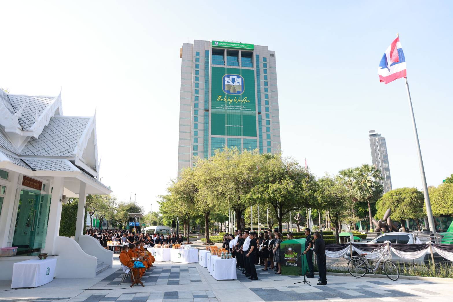 นายฉัตรชัย ศิริไล ผู้จัดการธนาคารเพื่อการเกษตรและสหกรณ์การเกษตร (ธ.ก.ส.) นำคณะผู้บริหารและพนักงาน ธ.ก.ส. ร่วมกิจกรรมทำบุญตักบาตรข้าวสารอาหารแห้งพระสงฆ์ จำนวน 9 รูป เนื่องในโอกาสวันปิดปีบัญชี 2568 (1 เมษายน 2568 - 31 มีนาคม 2569) โดยกิจกรรมดังกล่าวจัดขึ้นเพื่อส่งเสริมให้บุคลากรภายในองค์กรได้ร่วมสืบสานประเพณีและวัฒนธรรมไทยทางพุทธศาสนา พร้อมทั้งสร้างขวัญกำลังใจและเสริมความเป็นสิริมงคลให้แก่ธนาคารและผู้ปฏิบัติงานในการส่งท้ายปีบัญชีเก่าและพร้อมก้าวเข้าสู่ปีบัญชีใหม่ (1 เมษายน 2569 – 31 มีนาคม 2570) อย่างมั่นคงและเต็มเปี่ยมด้วยพลังใจ ณ อุทยานมงคลสถาน ธ.ก.ส. สำนักงานใหญ่ กรุงเทพมหานคร เมื่อวันที่ 31 มีนาคม 2569