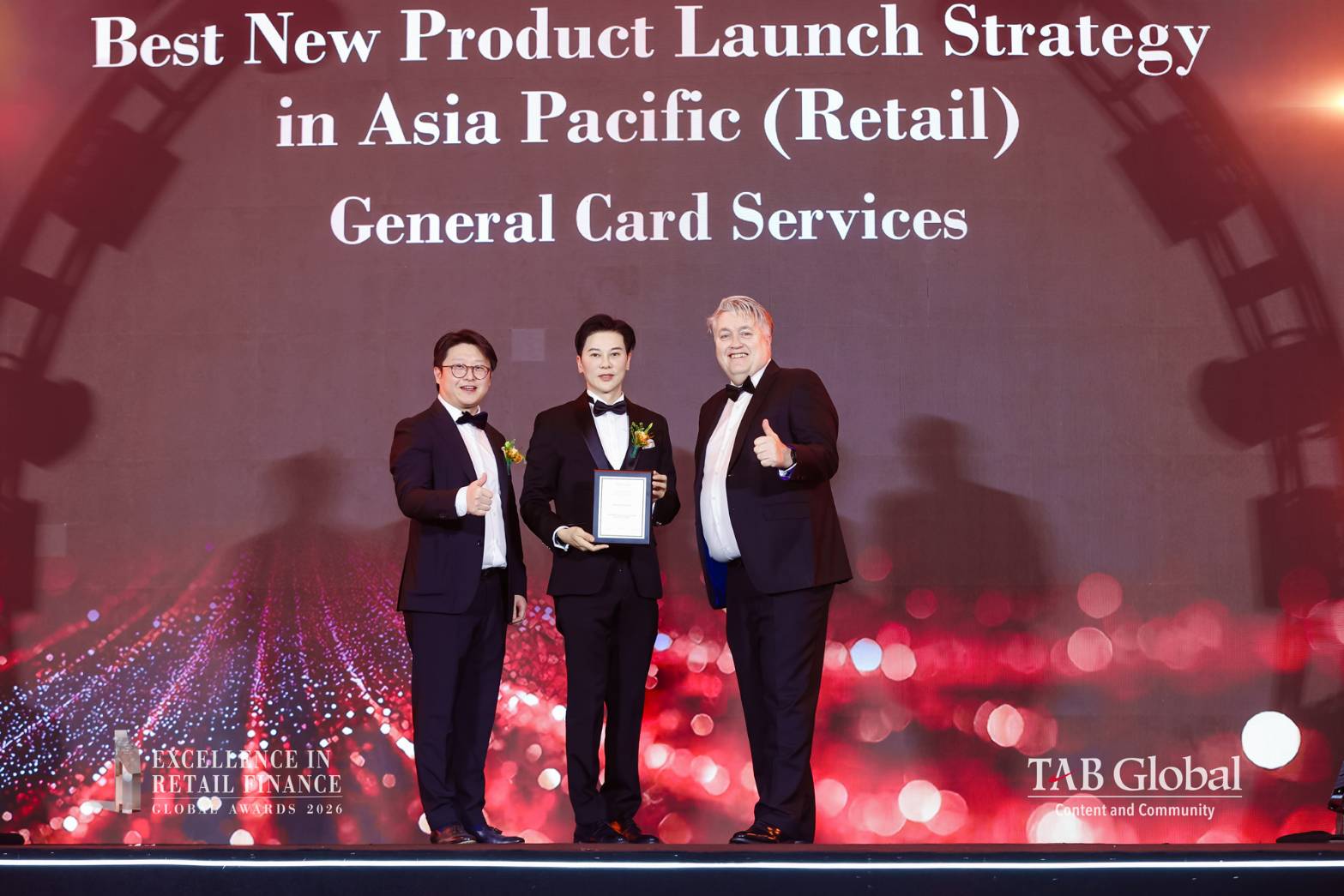ชีวิน ปราชญานุพร (กลาง) กรรมการผู้จัดการ บริษัท เจเนอรัล คาร์ด เซอร์วิสเซส จำกัด เป็นตัวแทนบัตรเครดิตเซ็นทรัล เดอะวัน รับรางวัล ‘Best New Product Launch Strategy in Asia Pacific (Retail)’ จากงานประกาศรางวัล TAB Global Excellence in Retail Finance Awards 2026 จัดขึ้นที่ Bulgari Hotel ณ เมืองเซี่ยงไฮ้ ประเทศจีน จากความสำเร็จของบัตรเครดิต เซ็นทรัล เดอะวัน ในการพัฒนานวัตกรรมทางการเงินใหม่ ๆ โดยขับเคลื่อนด้วยข้อมูลเชิงลึกจาก AI ควบคู่กับโมเดลสิทธิประโยชน์ T1 Dynamic Points ซึ่งเป็นนวัตกรรมรายแรกของตลาดบัตรเครดิตในประเทศไทย พร้อมสิทธิประโยชน์ที่โดดเด่น เพื่อส่งมอบประสบการณ์การใช้จ่ายที่ดียิ่งขึ้น ตอบโจทย์ความต้องการของลูกค้าอย่างรอบด้านและขยายศักยภาพในการหาลูกค้าใหม่