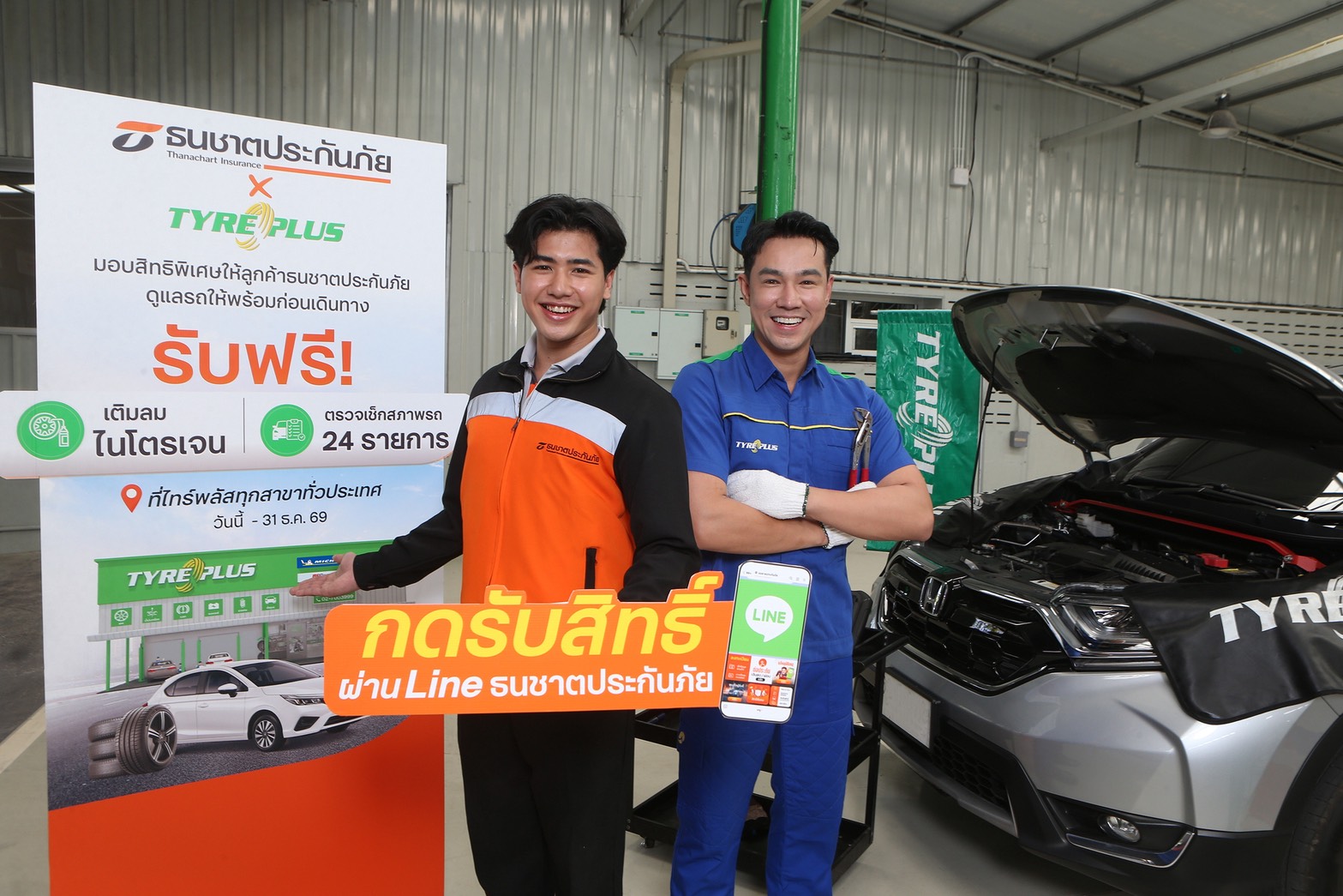 บริษัท ธนชาตประกันภัย จำกัด (มหาชน) ร่วมกับ TYREPLUS (ไทร์พลัส) ศูนย์บริการรถยนต์ครบวงจรมาตรฐานระดับสากล มอบสิทธิพิเศษสำหรับลูกค้าธนชาตประกันภัย ด้วยบริการตรวจสภาพรถยนต์ 24 รายการ พร้อมเติมลมไนโตรเจนฟรี เพื่อเสริมความพร้อมและความมั่นใจก่อนออกเดินทาง