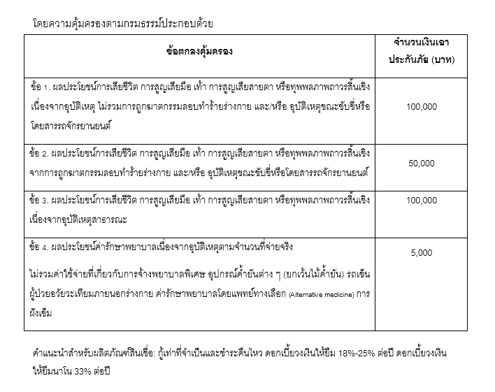 - เงื่อนไขและความคุ้มครองเป็นไปตามที่ระบุในกรมธรรม์