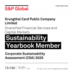 เคทีซีได้รับคัดเลือกเข้าสู่ทำเนียบ S&P Global Sustainability Yearbook 2026 ต่อเนื่องเป็นปีที่ 3 พร้อมสถานะบริษัทไทยเพียงรายเดียวในอุตสาหกรรมบริการทางการเงินแบบครบวงจรและตลาดทุน (Diversified Financial Services and Capital Markets) อีกทั้งยังมีคะแนนอยู่ในกลุ่ม 15% อันดับสูงสุดของอุตสาหกรรม จากบริษัทที่เข้าร่วมการประเมินทั่วโลกจำนวน 848 บริษัท สะท้อนศักยภาพด้านความยั่งยืนขององค์กร