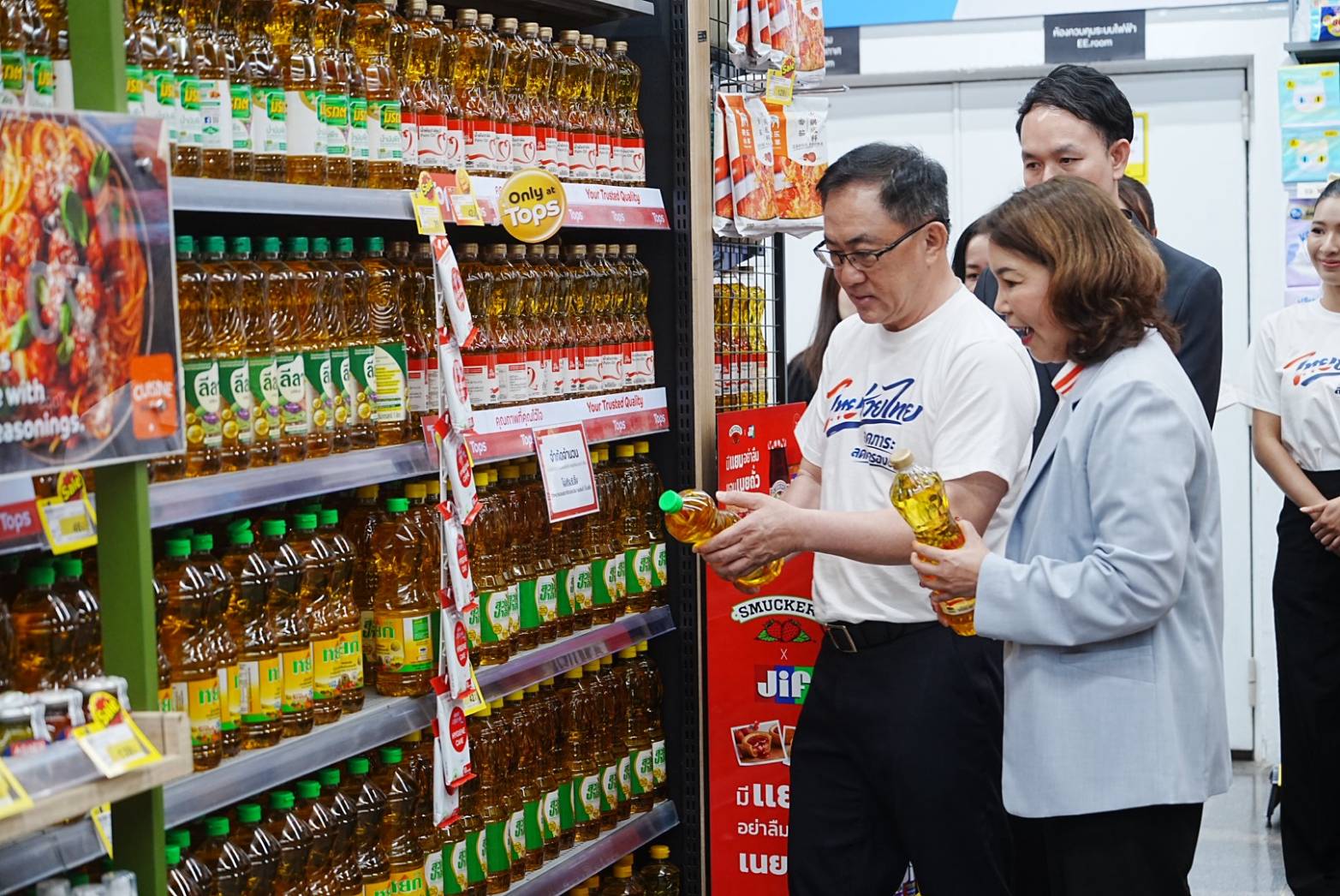 อธิบดีพูนพงษ์ฯ กล่าวต่อว่า “กระทรวงพาณิชย์ ได้เปิดตัวสินค้า ‘ไทยช่วยไทย’ ลดภาระ ลดค่าครองชีพ เมื่อวันที่ 1 เมษายน 2569 ที่ผ่านมา โดยได้รับความร่วมมือจากห้างค้าส่ง-ค้าปลีกรายใหญ่ อาทิ แม็คโคร โลตัส บิ๊กซี เดอะมอลล์ Tops วัตสัน ฟู้ดแลนด์ 7-11 ซีเจ มอร์ และผู้ผลิตสินค้าอุปโภคบริโภคทั่วประเทศ อาทิ สหพัฒน์ ยูนิลิเวอร์ BJC Kao ไวไว ข้าวมาบุญครอง ข้าวแสนดี ข้าวหงษ์ทอง และข้าวไก่แจ้ นำสินค้าอุปโภคบริโภคที่จำเป็นมาจำหน่ายในราคาพิเศษกว่า 3,000 รายการ ครอบคลุม 16 ประเภทสินค้า ลดราคาตั้งแต่ 25-58% อาทิ สินค้าเฮ้าส์แบรนด์ จาก Tops เช่น * ท็อปส์ข้าวหอม 100 เปอร์เซ็นต์ 5กก. ราคาโปรโมชัน 112 บาท ถูกกว่าแบรนด์หลัก 10 - 20 บาท *มัสท์ชูกระดาษชำระแบบม้วนเอ็กซ์ตร้า 24 ม้วน ราคาโปรโมชัน 95 บาท ถูกกว่าแบรนด์หลัก 20 - 50 บาท *ถูกใจผงซักฟอกสูตรมาตรฐานสำหรับซักเครื่อง 1,000 กรัม ราคาโปรโมชัน 35 บาท ถูกกว่าแบรนด์หลัก 20 35 บาท *สมาร์ทเตอร์น้ำยาล้างจานกลิ่นมะนาว 740 มล. แพค 3 ราคาโปรโมชัน 99 บาท ถูกกว่าแบรนด์หลัก 20 - 40 บาท เป็นต้น และ Tops ยังมีสินค้าเฮ้าส์แบรนด์ กว่า 600 รายการ ที่นำมาร่วมลดราคา รวมถึง เฮ้าส์แบรนด์จากแม็คโคร โลตัส บิ๊กซี เดอะมอลล์ วัตสัน ที่นำมาร่วมลดราคาอีกหลายพันรายการ ซึ่งสินค้า ‘ไทยช่วยไทย’ ลดภาระ ลดค่าครองชีพ จะดำเนินการในระยะแรกตั้งแต่วันที่ 1 เมษายน 2569 ซึ่งครอบคลุมช่วงเทศกาลสงกรานต์พอดี ประชาชนสามารถจับจ่ายสินค้าได้ในราคาประหยัดอย่างทั่วถึง ช่วยบรรเทาภาระค่าใช้จ่ายในช่วงที่มีความต้องการใช้จ่ายสูง”