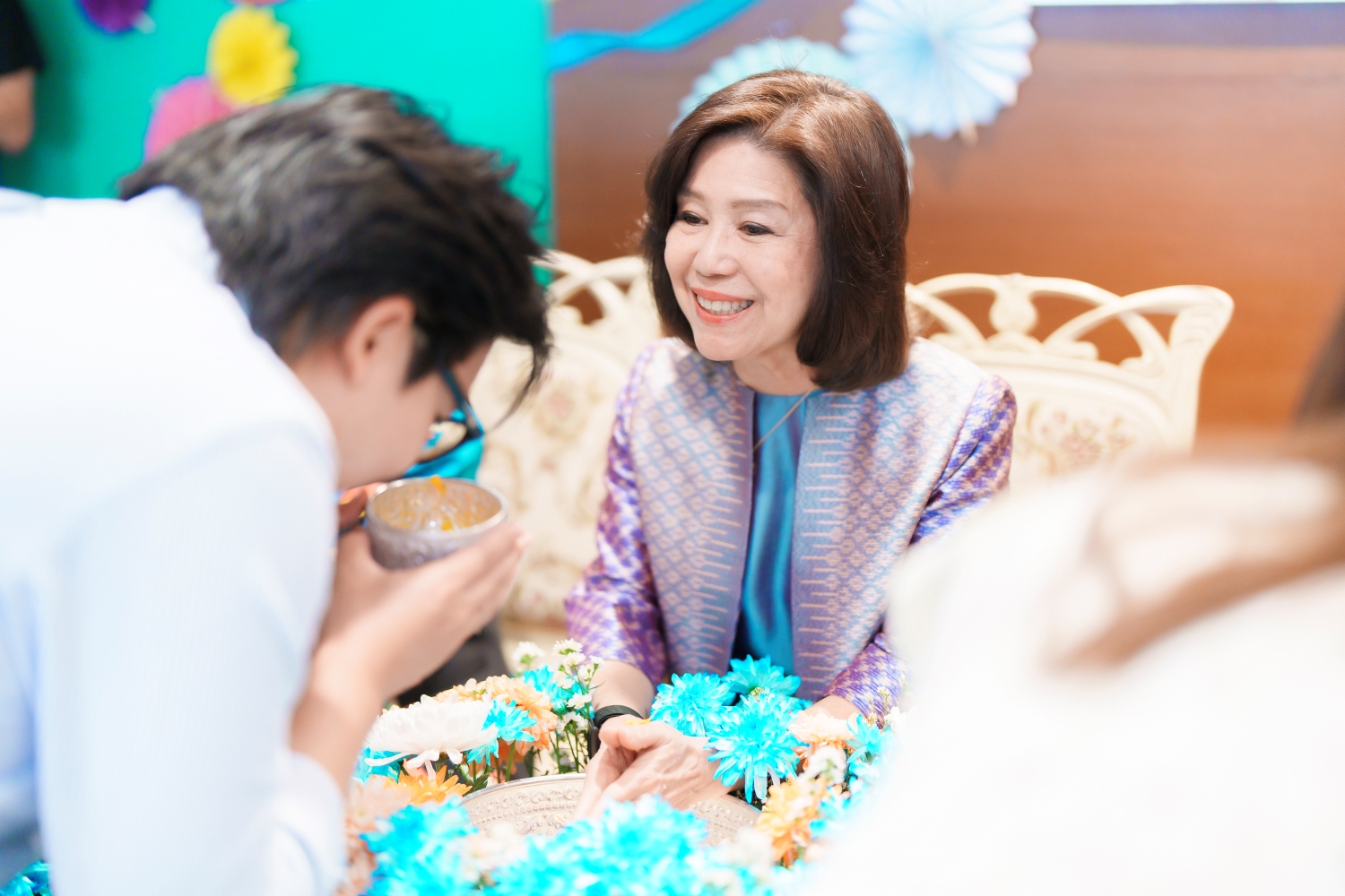บรรยากาศภายในงานเต็มไปด้วยความอบอุ่น เริ่มด้วยพิธีสรงน้ำพระพุทธรูป ผู้บริหารอวยพรพนักงาน และพนักงานรดน้ำขอพรผู้บริหาร เพื่อความเป็นสิริมงคล ทั้งยังเติมเต็มความสุขในวันสงกรานต์ด้วยการแต่งกายด้วยผ้าไทยและเสื้อผ้าสีสันสดใส ขณะเดียวกันยังมียังมีการจัดกิจกรรมเล่นเกมจับคู่ เพื่อสร้างความสัมพันธ์ภายในองค์กร พร้อมรับของรางวัลพิเศษ โดยรายได้ทั้งหมดจากการร่วมสนุกโดยไม่หักค่าใช้จ่าย จะนำไปสมทบทุนส่งต่อเป็นพลังความรักและสร้างรอยยิ้มให้แก่สังคมต่อไป