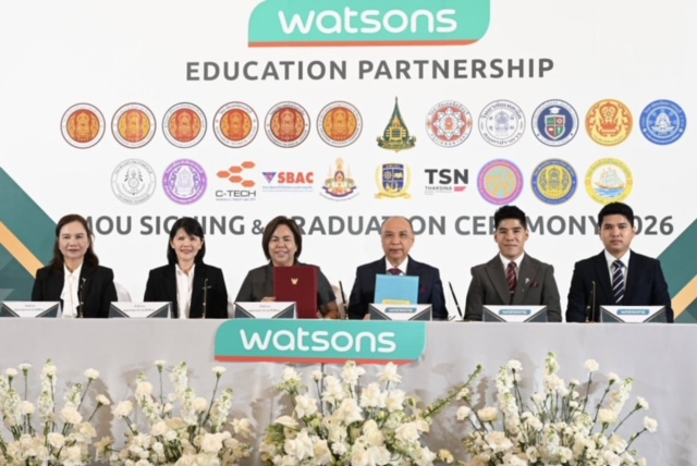 วัตสัน ประเทศไทย ผู้นำร้านเพื่อสุขภาพและความงามอันดับหนึ่ง เดินหน้าพัฒนาบุคลากรคนรุ่นใหม่ ผ่านความร่วมมือกับภาครัฐและสถาบันการศึกษา จัดกิจกรรม "Watsons Education Partnership MOU Signing & Graduation Ceremony 2026" พิธีลงนามบันทึกข้อตกลงความร่วมมือ (MOU) ร่วมกับสำนักงานคณะกรรมการการอาชีวศึกษา (สอศ.) มหาวิทยาลัยสุโขทัยธรรมาธิราช และเครือข่ายสถาบันการศึกษาพันธมิตร 20 แห่ง เพื่อยกระดับสมรรถนะวิชาชีพและสร้างเส้นทางอาชีพที่มั่นคงให้กับนักศึกษาในระบบทวิภาคีสู่ตำแหน่งบริหารระดับสูงในอนาคต โดยได้รับเกียรติจาก จิระวัฒน์ แต่งเจนกิจ ผู้อำนวยการฝ่ายทรัพยากรบุคคล วัตสัน ประเทศไทย ร่วมด้วยตัวแทน สอศ. ตัวแทนเครือข่ายสถาบันการศึกษา พร้อมผู้ทรงคุณวุฒิ และนักศึกษาทวิภาคีที่สำเร็จหลักสูตรเข้าร่วมพิธี ณ โรงแรมเรดิสัน บลู พลาซ่า กรุงเทพฯ เมื่อวันก่อน