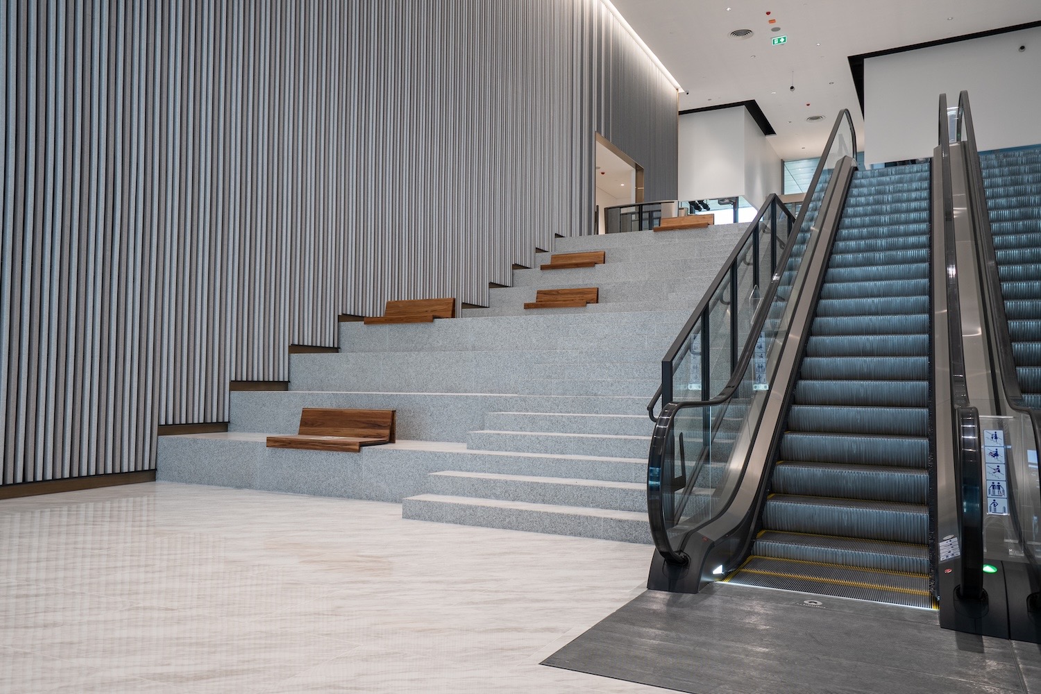 พื้นที่ภายใน AIA Connect ได้ออกแบบพื้นที่สำนักงานโดยผสานฟังก์ชันการใช้งานจริงเข้ากับฮวงจุ้ยอย่างลงตัว เริ่มตั้งแต่โถงล็อบบี้แบบ Double Volume ที่ไม่เพียงสร้างความประทับใจในความกว้างขวางและทันสมัยของอาคารตั้งแต่ก้าวแรก แต่ในทางฮวงจุ้ย บริเวณทางเข้าถือเป็นจุดรับพลัง ยิ่งเปิดกว้างและโปร่งโล่งยิ่งช่วยดึงดูดพลังงานมงคลเข้าสู่ตัวอาคารได้อย่างเต็มที่ ถัดมาคือการวางผังพื้นที่แบบไร้เสากลาง ที่ให้อิสระในการจัดสรรพื้นที่อย่างยืดหยุ่นและมีประสิทธิภาพ รองรับการปรับเปลี่ยนให้เข้ากับรูปแบบของแต่ละองค์กรได้อย่างอิสระ เสริมด้วยเพดานสูงโปร่งและหน้าต่างกระจกบานใหญ่ที่เปิดรับแสงธรรมชาติเต็มที่ ช่วยสร้างบรรยากาศการทำงานที่ผ่อนคลายและไม่อึดอัด ซึ่งความโปร่งโล่งนี้จะช่วยกระตุ้นการไหลเวียนของพลังงานที่ดีและรักษาสมดุลระหว่างพื้นที่ภายในกับธรรมชาติภายนอกได้อย่างกลมกลืน