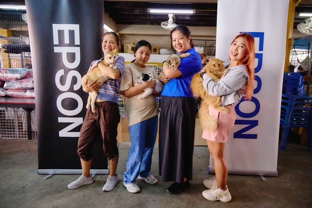 นางสาววิสาข์ ธนวิภาคย์ ผู้จัดการอาวุโสฝ่ายแบรนด์และสื่อสารองค์กร บริษัท เอปสัน (ประเทศไทย) จำกัด นำพนักงาน สื่อมวลชน และครอบครัว ร่วมกิจกรรม "Stray Away From Plastic" โดยร่วมกันสวมปลอกคอนิรภัยและป้ายระบุชื่อให้แมวจร ซึ่งผลิตจากวัสดุธรรมชาติและไม่เป็นอันตรายต่อสัตว์ เพื่อเพิ่มการมองเห็นและความปลอดภัยในชุมชน พร้อมบริจาคอาหารและสิ่งของจำเป็นให้กับแมว ภายใต้กิจกรรมปิดท้ายแคมเปญซีเอสอาร์ประจำปี “วิถีไทยไร้พลาสติก - Thai Way Says No to Plastic” ที่มุ่งชวนลดการใช้พลาสติกและส่งต่อความห่วงใยสู่สังคม โดยสามารถดูแลแมวจรกว่า 100 ตัว ณ วัดคงคา อำเภอบางใหญ่ จังหวัดนนทบุรี