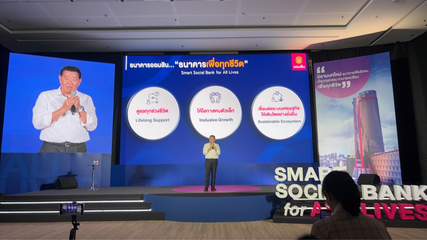 “โลกวันนี้ไม่เหมือนเดิม และความท้าทายยังไม่จบ ธนาคารต้องไม่ใช่แค่คนปล่อยเงิน โจทย์ของออมสินจะไม่ใช่แค่ทำให้ธนาคารอยู่ได้ แต่ต้องเป็นส่วนหนึ่งที่ช่วยให้ลูกค้าอยู่รอดไปด้วยกัน” ผู้อำนวยการออมสินกล่าว