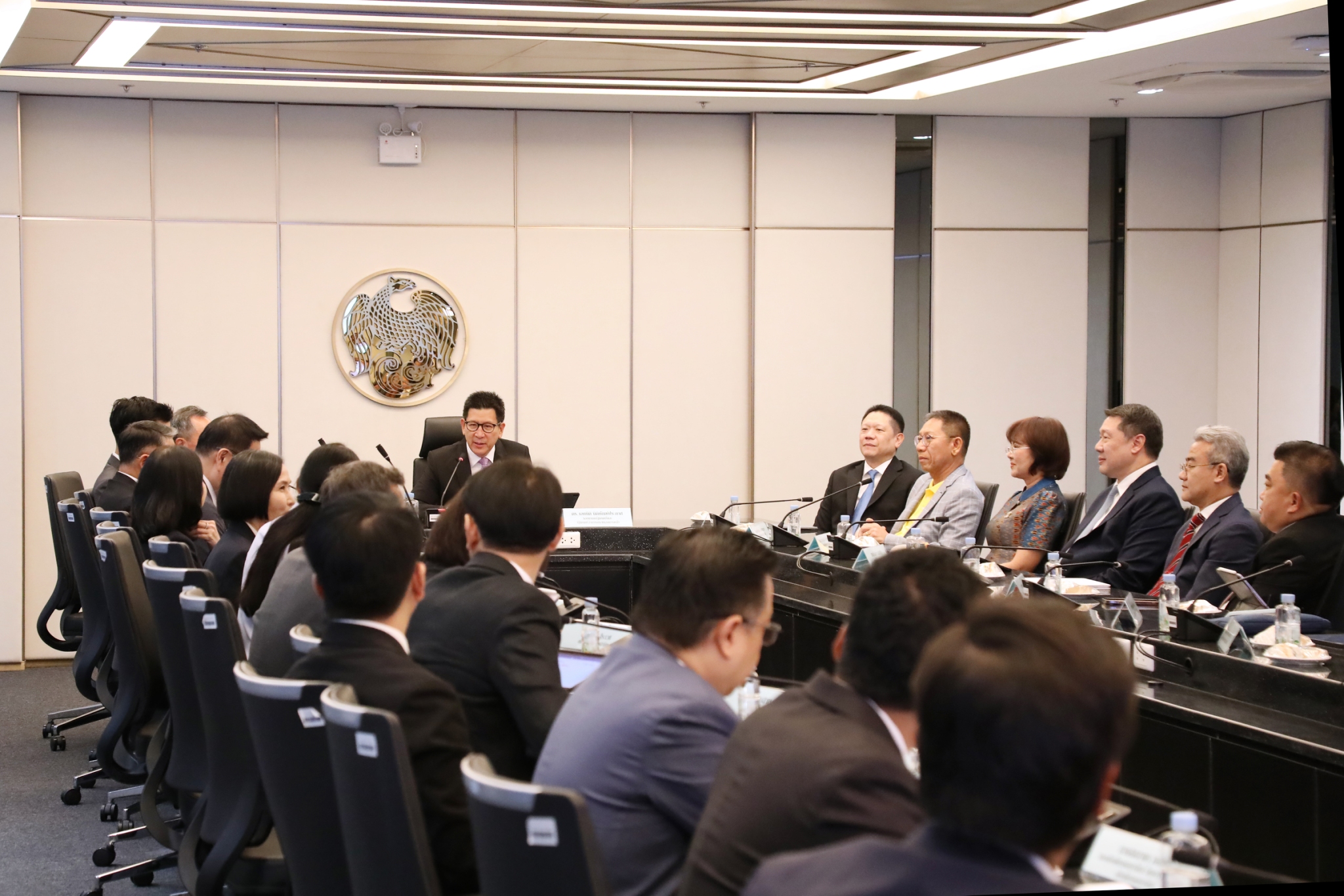 ดร.เอกนิติ นิติทัณฑ์ประภาศ รองนายกรัฐมนตรีและรัฐมนตรีว่าการกระทรวงการคลัง เป็นประธานการประชุมมอบนโยบายแก่ผู้บริหารระดับสูงกระทรวงการคลัง โดยมีนายวรภัค ธันยาวงษ์ รัฐมนตรีช่วยว่าการกระทรวงการคลัง นายลวรณ แสงสนิท ปลัดกระทรวงการคลัง และผู้บริหารกระทรวงการคลัง ร่วมการประชุม ณ ห้องประชุมรัฐมนตรีว่าการกระทรวงการคลัง ชั้น 20 อาคาร 150 ปี กระทรวงการคลัง เมื่อวันที่ 1 ตุลาคม 2568