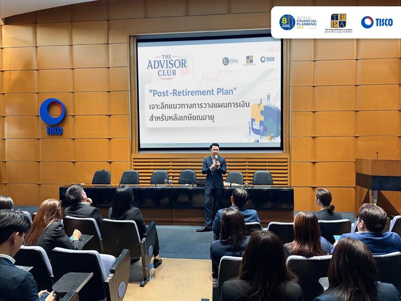 ธนาคารทิสโก้ จำกัด (มหาชน) เดินหน้ายกระดับเจ้าหน้าที่ดูแลลูกค้า จัดโครงการ The Advisor Club โดยร่วมมือกับ สมาคมนักวางแผนการเงินไทย (TFPA) เสริมความรู้เชิงลึกให้แก่พนักงานที่ได้รับคุณวุฒิที่ปรึกษาการเงิน AFPT™ และนักวางแผนการเงิน CFP® ในหัวข้อ “Post-Retirement Plan" เจาะลึกแนวทางการวางแผนการเงินสำหรับหลังเกษียณอายุ โดยได้รับเกียรติจาก ผศ.ดร.ธนาวัฒน์ สิริวัฒน์ธนกุล CFP® กรรมการสมาคมนักวางแผนการเงินไทย และอาจารย์ประจำภาควิชาการเงินคณะบริหารธุรกิจ มหาวิทยาลัยเกษตรศาสตร์ (ที่หนึ่งจากซ้าย) บรรยายให้ความรู้ และนายธีรนาถ รุจิเมธาภาส ผู้ช่วยกรรมการผู้จัดการใหญ่อาวุโส บริษัท ทิสโก้ไฟแนนเชียลกรุ๊ป จำกัด (มหาชน) (ที่สองจากซ้าย) ให้การต้อนรับ