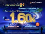 ธนาคารไทยเครดิต จำกัด (มหาชน) มอบโปรโมชันฝากประจำสุดพิเศษ รับดอกเบี้ยสูงถึง 1.60% ต่อปี ให้ผลตอบแทนที่แน่นอนและคุ้มค่า เหมาะสำหรับผู้ที่ต้องการเพิ่มผลตอบแทนจากเงินออมอย่างมั่นใจ เพียงเปิดบัญชีขั้นต่ำ 100,000 บาท