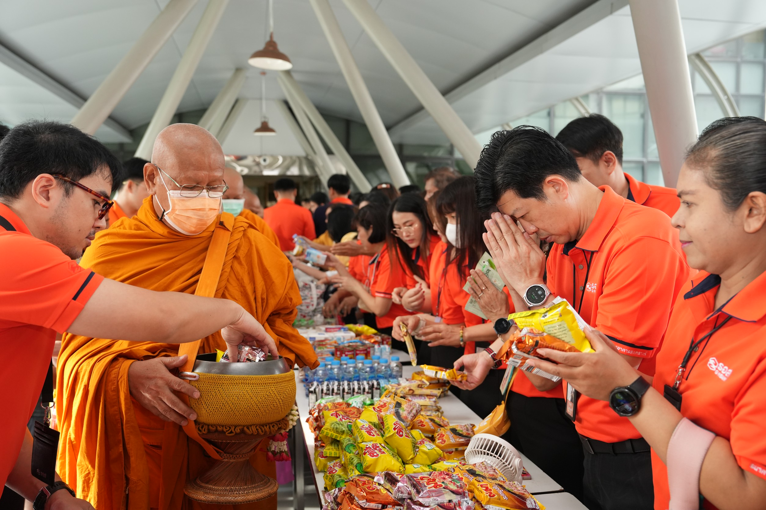 นายกมลภพ วีระพละ กรรมการผู้จัดการธนาคารอาคารสงเคราะห์ (ธอส.) พร้อมด้วยผู้บริหารและพนักงานธนาคาร ร่วมพิธีทำบุญตักบาตรถวายเป็นพระราชกุศล แด่พระบาทสมเด็จพระบรมชนกาธิเบศร มหาภูมิพลอดุลยเดชมหาราช บรมนาถบพิตร พระมหากษัตริย์รัชกาลที่ 9 แห่งราชวงศ์จักรี เนื่องในวันนวมินทรมหาราช วันคล้ายวันสวรรคต วันที่ 13 ตุลาคม เพื่อน้อมรำลึกในพระมหากรุณาธิคุณเป็นล้นพ้นอันหาที่สุดมิได้ โดยมีพระครูสมุห์เดือน ปุญญจาโร ดร. เจ้าอาวาสวัดโบสถ์วรดิตถ์ จังหวัดอ่างทอง นำพระภิกษุ และสามเณร รวม 29 รูป ออกรับบิณฑบาต ทั้งนี้ พิธีดังกล่าวจัดขึ้น ณ ธนาคารอาคารสงเคราะห์ สำนักงานใหญ่ เมื่อวันที่ 9 ตุลาคม 2568