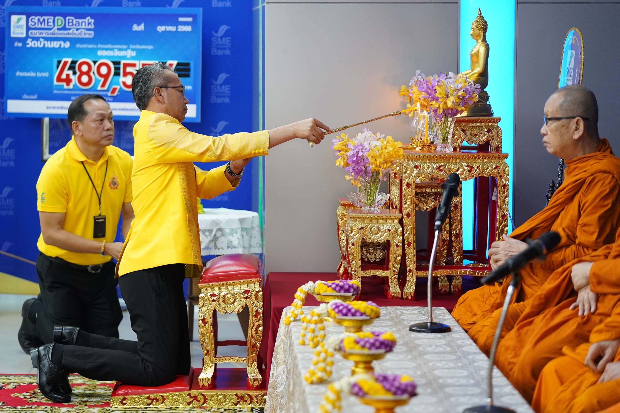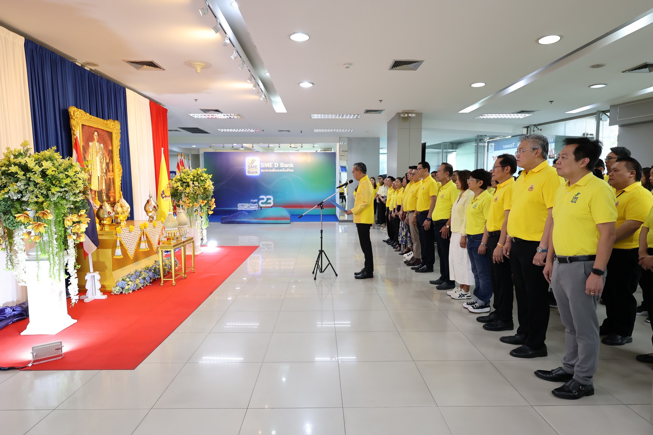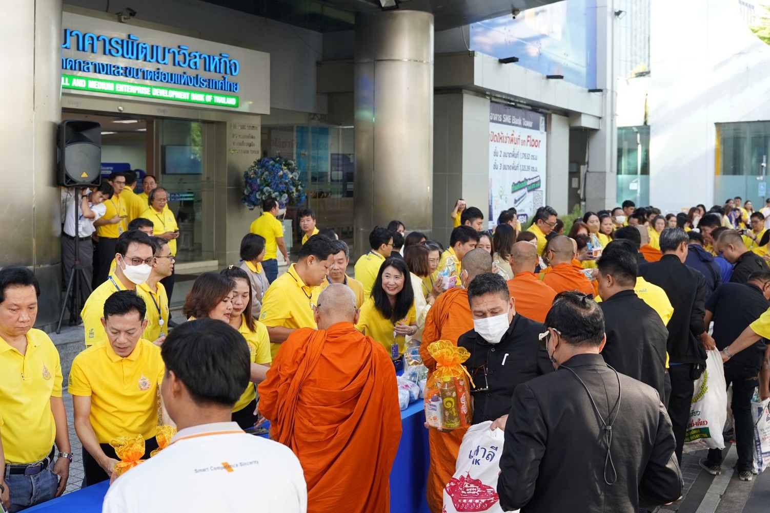 ธนาคารพัฒนาวิสาหกิจขนาดกลางและขนาดย่อมแห่งประเทศไทย (ธพว.) หรือ SME D Bank โดย นายพิชิต มิทราวงศ์ กรรมการผู้จัดการ พร้อมด้วยคณะผู้บริหารและเจ้าหน้าที่ ร่วมพิธีทำบุญตักบาตรถวายเป็นพระราชกุศลแด่พระบาทสมเด็จพระบรมชนกาธิเบศร มหาภูมิพลอดุลยเดชมหาราช บรมนาถบพิตร พระมหากษัตริย์ รัชกาลที่ 9 แห่งราชวงศ์จักรี เนื่องในวันนวมินทรมหาราช วันคล้ายวันสวรรคต วันที่ 13 ตุลาคม และพิธีวางพานพุ่มถวายราชสดุดี เพื่อน้อมรำลึกในพระมหากรุณาธิคุณเป็นล้นพ้นอันหาที่สุดมิได้ ณ บริเวณชั้น 1 สำนักงานใหญ่ SME D Bank อาคาร SME Bank Tower เมื่อวันที่ 10 ตุลาคม 2568
