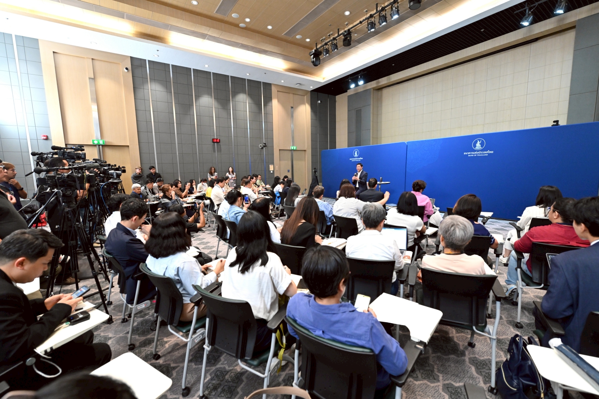 สำหรับเรื่องค่าเงินบาท ทาง ธปท. มีการดูแลติดตามอย่างใกล้ชิดเพื่อรักษาเสถียรภาพทางเศรษฐกิจ ซึ่งในสถานการณ์ปัจจุบัน พิจารณาจาก Year to Date พบว่า ค่าเงินบาทไม่ได้แข็งค่าเท่ากับช่วงปีที่แล้ว โดยในตอนนี้เงินบาทไทยแข็งค่าประมาณ 4.5% นับว่ายังไม่รุนแรงเมื่อเทียบกับหลายประเทศในภูมิภาคอาเซียนที่แข็งค่ากว่า แต่อย่างไรก็ตามปัจจัยการขึ้นลงของเงินบาทไทย นอกจากได้รับอิทธิพลจากเงินดอลลาร์แล้ว เงินทุนที่ไหลเข้าออกก็เป็นปัจจัยส่งเสริมค่าเงินบาทเช่นกัน ซึ่งตอนนี้ ธปท.ทำงานร่วมกับกระทรวงการคลัง สำนักงานคณะกรรมการกำกับหลักทรัพย์และตลาดหลักทรัพย์ (กลต.) และสำนักงานป้องกันและปราบปรามการฟอกเงิน (ปปง.) ติดตามตรวจสอบเส้นทางของธุรกรรมทางการเงินที่มีความน่าสงสัยที่เข้ามายังประเทศไทยและมีผลทำให้ค่าเงินบาทแข็งค่าขึ้น ซึ่ง ณ ขณะนี้ อยู่ในระยะเริ่มต้นของการปราบปรามเงินที่เข้ามาอย่างไม่พึงประสงค์เพื่อรักษาค่าเงินบาทให้อยู่ในระดับเหมาะสม
