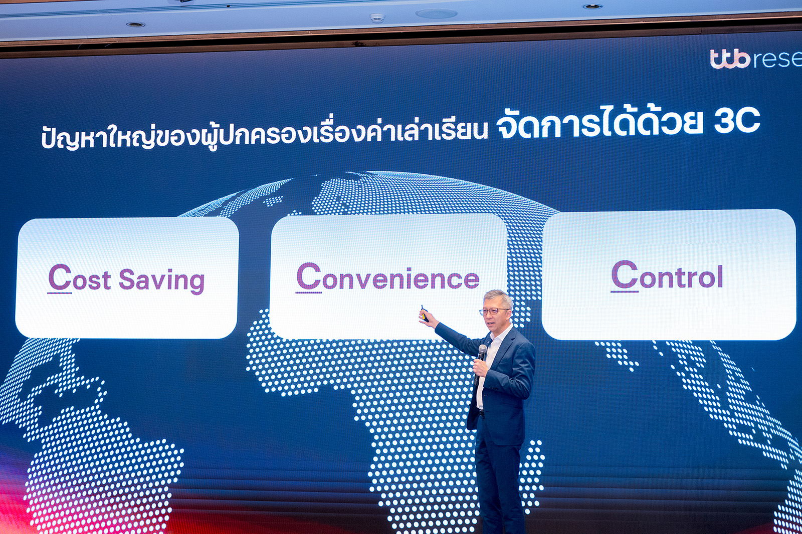 นายปิติ ตัณฑเกษม ประธานเจ้าหน้าที่บริหาร ทีเอ็มบีธนชาต กล่าวว่า เศรษฐกิจไทยมีอัตราการเติบโตที่ช้าลงอย่างต่อเนื่องตลอด 30 ปีที่ผ่านมา โดยเฉพาะตั้งแต่หลังวิกฤตสถานการณ์โควิด-19 (2020) ที่มีอัตราการเติบโตเฉลี่ยเพียง 2.4% แต่ในทางกลับกัน ค่าใช้จ่ายโดยรวมของคนไทยยังเพิ่มขึ้นอย่างต่อเนื่อง ทั้งค่าใช้จ่ายด้านค่าครองชีพ ด้านสุขภาพ ด้านประกัน และด้านการศึกษา ส่งผลให้ความมั่งคั่งของคนไทยไม่เหมือนเดิม โดยสะท้อนได้จากอัตราการเติบโตของเงินฝากในประเทศที่ลดลง และผลตอบแทนจากการลงทุนในสินทรัพย์ภายในประเทศที่ไม่เพียงพอรองรับค่าใช้จ่ายในอนาคต นอกจากนี้ สำหรับผู้ปกครองที่มีแผนส่งลูกไปศึกษาต่อต่างประเทศยังต้องเผชิญกับอัตราค่าเล่าเรียนที่มีการเติบโตสูงกว่าดัชนีราคาผู้บริโภค (CPI) อย่างมีนัยสำคัญ ซึ่งส่งผลให้ค่าใช้จ่ายในการส่งบุตรหลานเรียนต่อต่างประเทศ เช่น สหรัฐอเมริกา มีค่าใช้จ่ายโดยรวมในการศึกษาต่อระดับปริญญาตรีสูงถึง 4 ล้านบาทต่อปี จึงกล่าวได้ว่า การเตรียมความพร้อมด้านการศึกษาถือเป็นการลงทุนที่สำคัญที่สุดและต้องวางแผนให้ดี โดยเฉพาะการเตรียมทุนการศึกษาซึ่งผู้ปกครองควรวางแผนล่วงหน้าผ่านการลงทุนในสินทรัพย์สกุลเงินต่างประเทศและการออมเงินในสกุลเงินต่างประเทศที่เหมาะสมกับประเทศเป้าหมายที่จะส่งบุตรหลานไปศึกษาต่อ