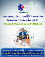 ขอขอบคุณประชาชนที่ให้ความสนใจ โครงการ "คนละครึ่ง พลัส" ขณะนี้มีผู้ลงทะเบียนครบ 20 ล้านสิทธิแล้ว