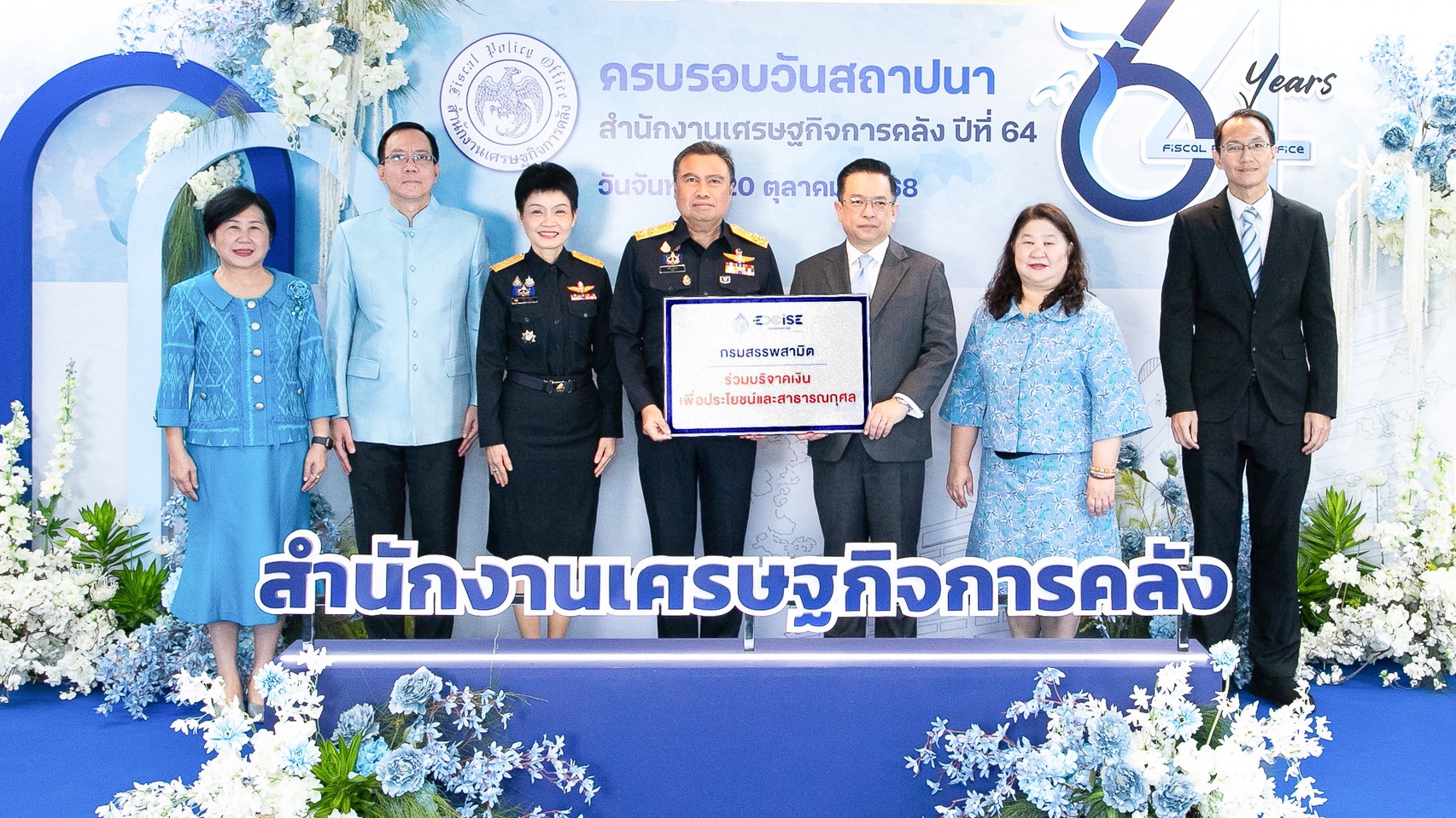 ดร.พรชัย ฐีระเวช อธิบดีกรมสรรพสามิต พร้อมด้วย ดร. นิตยา โสรีกุล รองอธิบดีกรมสรรพสามิต ร่วมแสดงความยินดีเนื่องในโอกาสครบรอบวันสถาปนาสำนักงานเศรษฐกิจการคลัง (สศค.) ปีที่ 64 โดยกรมสรรพสามิตร่วมบริจาคเงินเข้ากองทุนสวัสดิการสำนักงานเศรษฐกิจการคลัง โดยมี นายวินิจ วิเศษสุวรรณภูมิ ผู้อำนวยการสำนักงานเศรษฐกิจการคลัง เป็นผู้รับมอบ ณ ห้องประชุมป๋วย อึ๊งภากรณ์ ชั้น 7 สำนักงานเศรษฐกิจการคลัง เขตพญาไท กรุงเทพมหานคร เมื่อวันที่ 20 ตุลาคม 2568