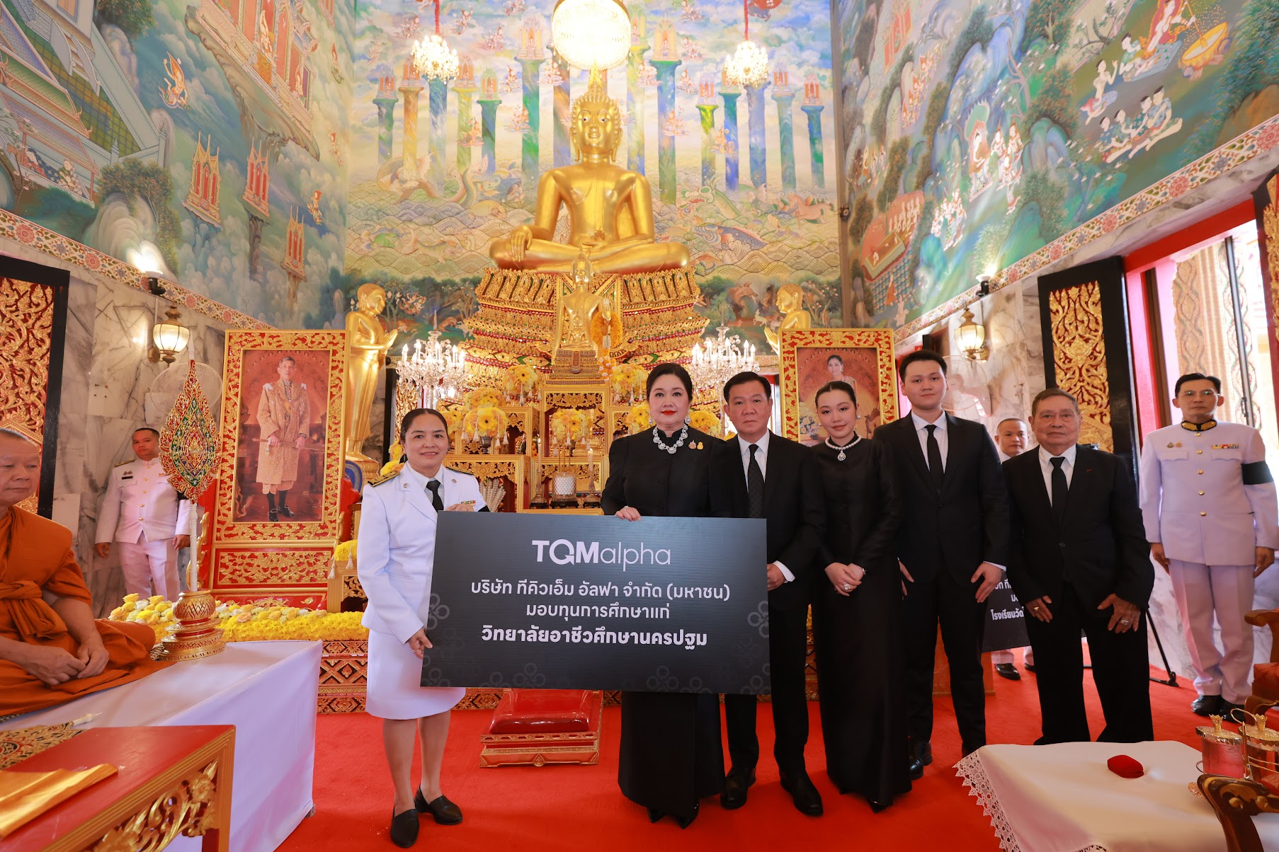 โอกาสนี้ นางนภัสนันท์ พรรณนิภา พร้อมด้วยคณะผู้บริหารบริษัท ทีคิวเอ็ม อัลฟา จำกัด (มหาชน) ได้มอบเงินบำรุงการศึกษาแก่ผู้แทนจากสถานศึกษา 3 แห่ง เพื่อสนับสนุนการพัฒนาการศึกษาในพื้นที่ อีกทั้งมีผู้มีจิตศรัทธาจากบริษัทฯ และประชาชนที่มาร่วมพิธีร่วมบริจาคเพิ่มเติม โดยในเบื้องต้น ยอดเงินถวายและบริจาครวมทั้งสิ้น 3,456,959 บาท ซึ่งนับเป็นอีกหนึ่งกิจกรรมสำคัญที่สะท้อนถึงเจตนารมณ์ของบริษัท ทีคิวเอ็ม อัลฟา จำกัด (มหาชน) ในการร่วมสืบสานพระพุทธศาสนา สร้างกุศล และส่งเสริมประโยชน์แก่สังคมอย่างต่อเนื่อง