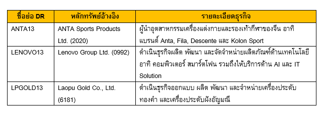 ตลาดหลักทรัพย์แห่งประเทศไทย รับจดทะเบียนตราสารแสดงสิทธิในหลักทรัพย์ต่างประเทศ (DR) จำนวน 3 หลักทรัพย์ใหม่ อ้างอิงหุ้นชั้นนำในตลาดหลักทรัพย์ฮ่องกง ออกโดย บริษัทหลักทรัพย์ เคจีไอ (ประเทศไทย) จำกัด (มหาชน) (KGI) เริ่มซื้อขายในตลาดหลักทรัพย์ไทย 18 พฤศจิกายน 2568