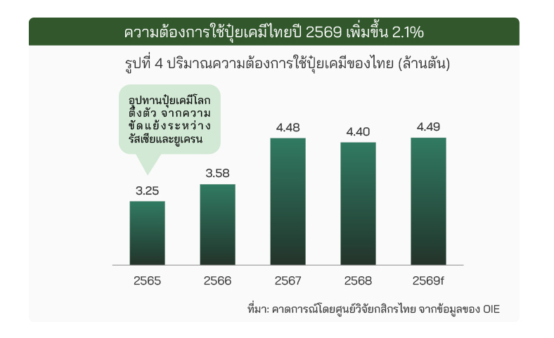 ความต้องการใช้ปุ๋ยเคมีของไทยในปี 2569 คาดอยู่ที่ 4.49 ล้านตัน