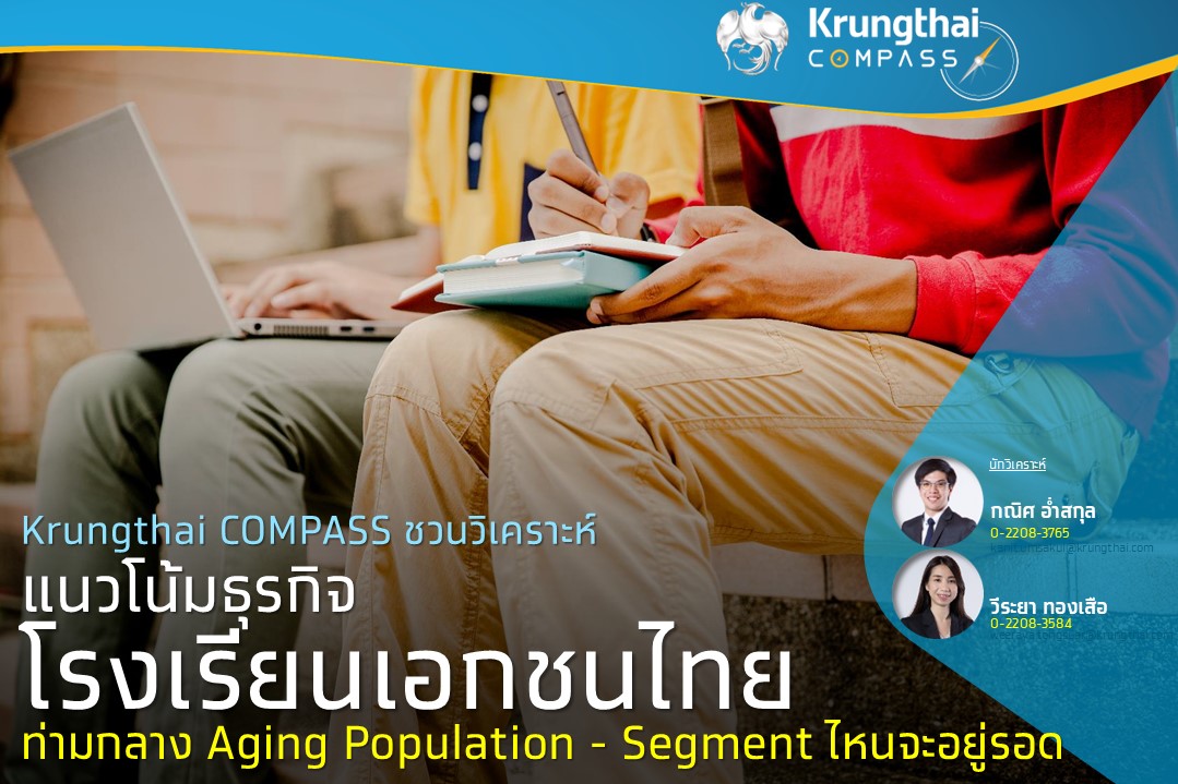 “โรงเรียนเอกชน” ถือเป็น 1 ในธุรกิจรากฐานสำคัญของประเทศ จากการมีความเชื่อมโยงโดยตรงต่อคุณภาพของทุนมนุษย์ (Human Capital) ที่เป็นปัจจัยในการขับเคลื่อนเศรษฐกิจและสังคมในระยะยาว โดย บทความนี้ Krungthai COMPASS อยากชวนมาศึกษา Landscape ของธุรกิจโรงเรียนเอกชนของไทย พร้อมวิเคราะห์แนวโน้มธุรกิจในระยะ 2-3 ปีต่อจากนี้ว่าจะเป็นอย่างไร? ภาวะ Aging Population จะส่งผลกระทบต่อธุรกิจแค่ไหน? และผู้ประกอบการควรมีแนวทางปรับตัวอย่างไร?