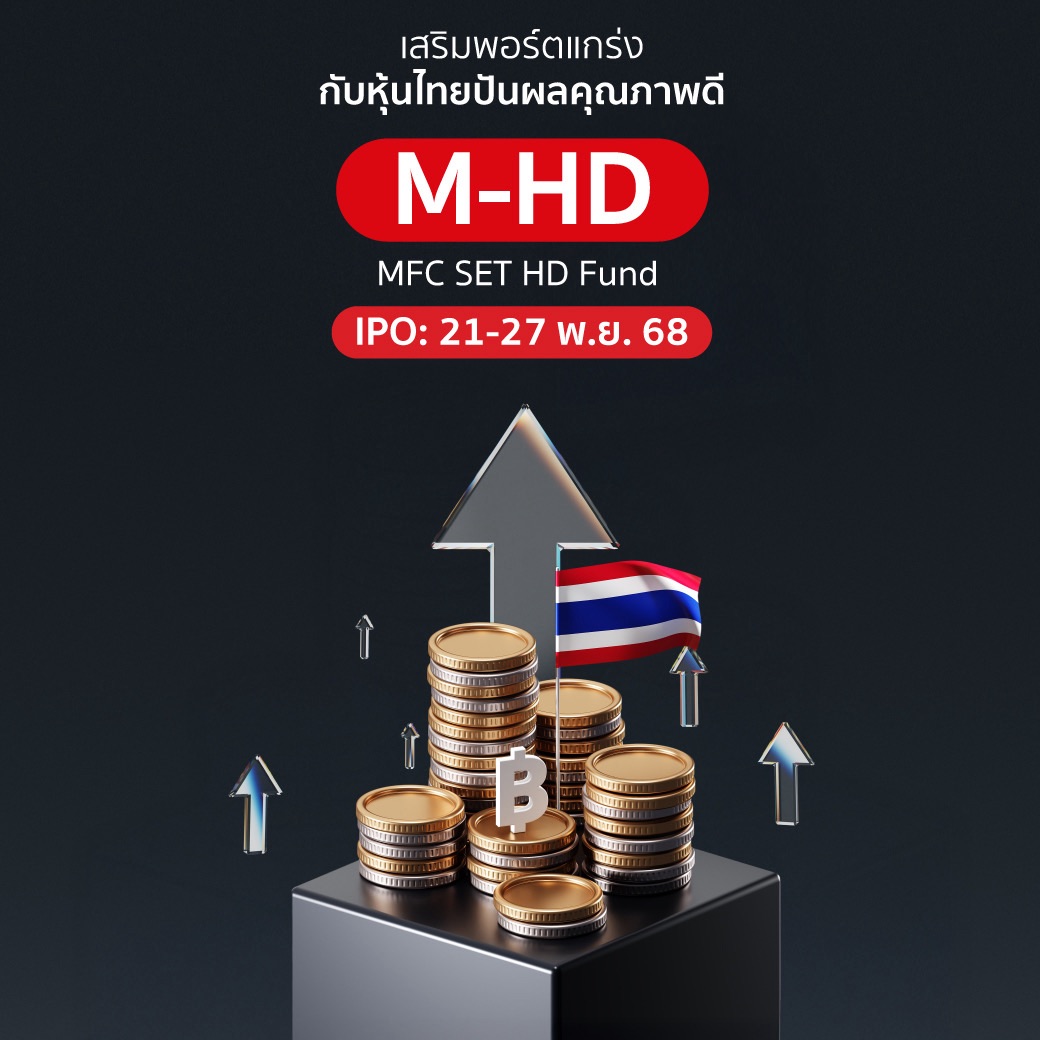 นายธนโชติ รุ่งสิทธิวัฒน์ กรรมการผู้จัดการ บริษัทหลักทรัพย์จัดการกองทุน เอ็มเอฟซี จำกัด (มหาชน) หรือ บลจ.เอ็มเอฟซี (MFC) ในฐานะผู้เชี่ยวชาญด้านการบริหารจัดการกองทุนคุณภาพทั้งในและต่างประเทศ เปิดเผยว่า บลจ.เอ็มเอฟซี นำเสนอ "กองทุนเปิดเอ็มเอฟซี เซ็ท ไฮ ดิวิเดนด์ หุ้นทุน" หรือ "M-HD" มีนโยบายลงทุนในตราสารทุนของบริษัทที่จดทะเบียนอยู่ในตลาดหลักทรัพย์แห่งประเทศไทย โดยจะพิจารณาเลือกลงทุนในหุ้นที่เป็นส่วนประกอบของดัชนีผลตอบแทนรวม SET High Dividend 30 (SETHD TRI) เป็นหลัก โดยเฉลี่ยในรอบปีบัญชีไม่น้อยกว่า 80% ของ NAV เปิดเสนอขาย IPO ครั้งแรกระหว่างวันที่ 21-27 พ.ย. 68 เงินลงทุนครั้งแรกขั้นต่ำ 1,000 บาท