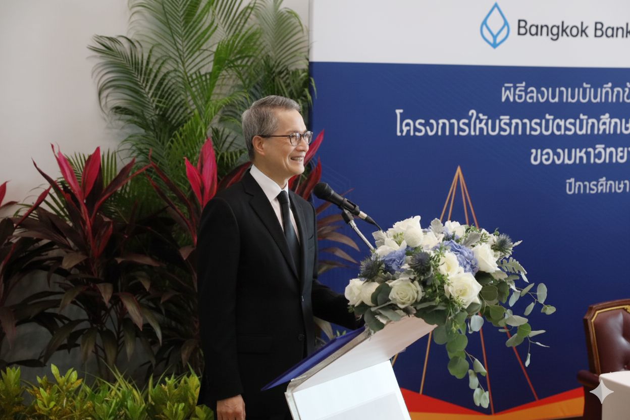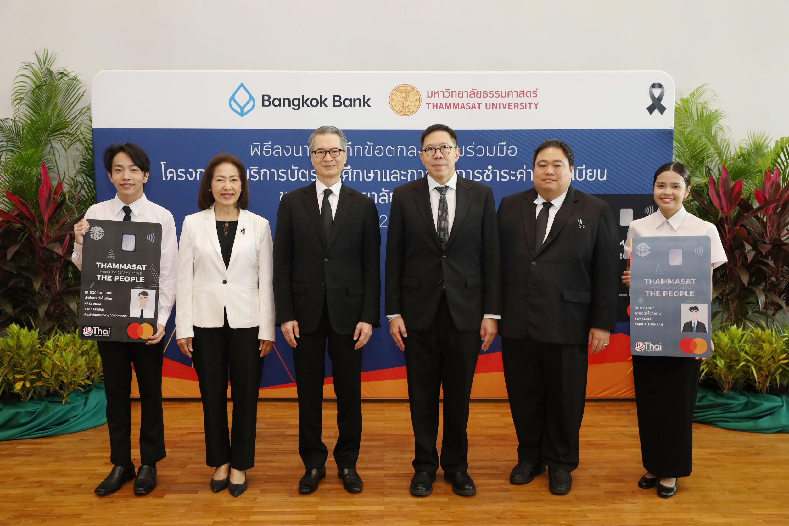 นายจรัมพร โชติกเสถียร กรรมการบริหาร ธนาคารกรุงเทพ จำกัด (มหาชน) กล่าวถึงความร่วมมือในครั้งนี้ว่า ขอขอบคุณมหาวิทยาลัยธรรมศาสตร์ที่ไว้วางใจ ให้ธนาคารกรุงเทพเป็นผู้ให้บริการบัตรนักศึกษา พร้อมชำระค่าลงทะเบียนต่างๆในปีการศึกษา 2568-2572 ถือเป็นการต่อยอดความร่วมมือ จากการร่วมกันพัฒนาแอปพลิเคชัน TU GREATS App ให้สามารถแสดงบัตรประจำตัวนักศึกษา Virtual ID Card โดยที่ตัว Mobile Application สามารถใช้ชำระค่าลงทะเบียนเรียน และสินค้าต่างๆ เพื่อตอบโจทย์ความต้องการได้อย่างครอบคลุมตั้งแต่ปี 2563 จนถึงปัจจุบัน ซึ่งธนาคารกรุงเทพเล็งเห็นความสำคัญของการพัฒนาโครงสร้างพื้นฐานด้านการเงินเพื่อภาคการศึกษาที่จะต้องรองรับผู้ใช้งานจำนวนมาก จึงจำเป็นต้องมีโครงสร้างด้านการเงินที่มีเสถียรภาพและปลอดภัย ธนาคารจึงพร้อมนำเทคโนโลยีและบุคคลากรที่เชี่ยวชาญด้านระบบชำระเงินดิจิทัลมาช่วยให้การดำเนินงานของมหาวิทยาลัยธรรมศาสตร์ ให้มีการใช้งานได้สะดวก รวดเร็ว และปลอดภัยยิ่งขึ้น
