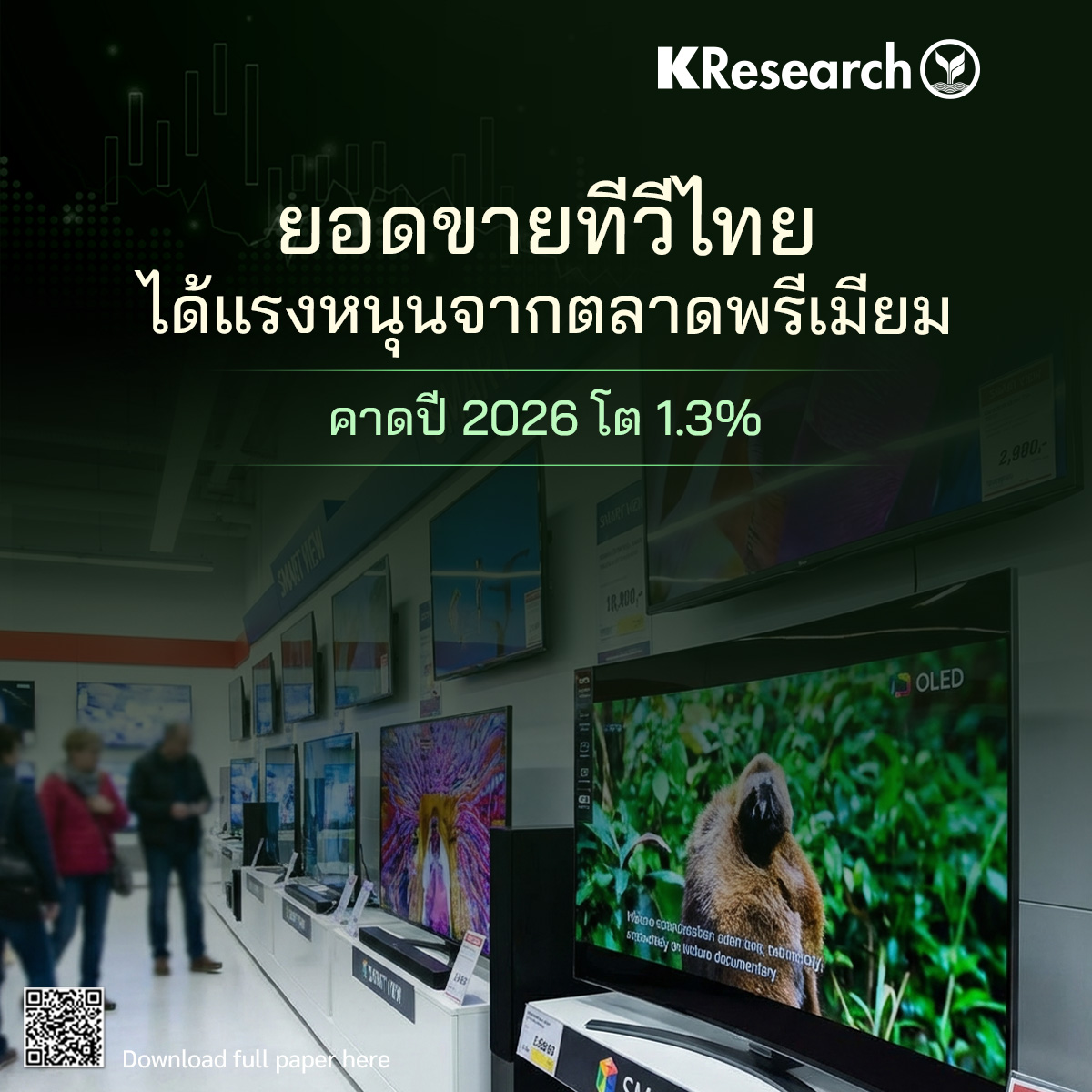 ศูนย์วิจัยกสิกรไทยวิเคราะห์ "ยอดขายทีวีไทยได้แรงหนุนจากตลาดพรีเมียม คาดปี 2026 โต 1.3%"