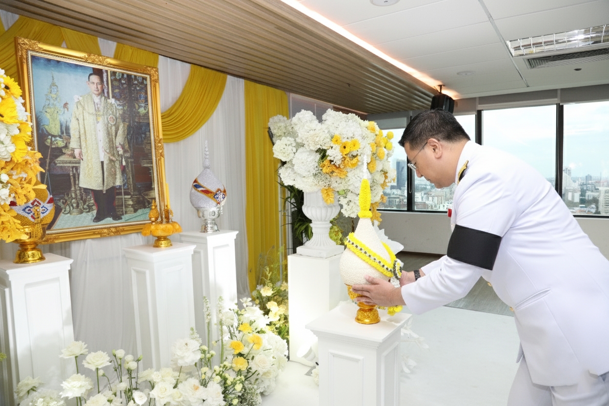 นายสิทธิกร ดิเรกสุนทร กรรมการและผู้จัดการทั่วไป บรรษัทประกันสินเชื่ออุตสาหกรรมขนาดย่อม (บสย.) พร้อมคณะผู้บริหาร ร่วมพิธีถวายพานพุ่มราชสักการะ เนื่องในวันคล้ายวันพระบรมราชสมภพ พระบาทสมเด็จพระบรมชนกาธิเบศร มหาภูมิพลอดุลยเดชมหาราช บรมนาถบพิตร ซึ่งเป็นวันชาติ และวันพ่อแห่งชาติ 5 ธันวาคม 2568 เพื่อแสดงความจงรักภักดีและน้อมรำลึกในพระมหากรุณาธิคุณเป็นล้นพ้นอันหาที่สุดมิได้ ณ บสย. สำนักงานใหญ่ อาคารชาญอิสสระทาวเวอร์ 2 เมื่อวันที่ 4 ธันวาคม 2568