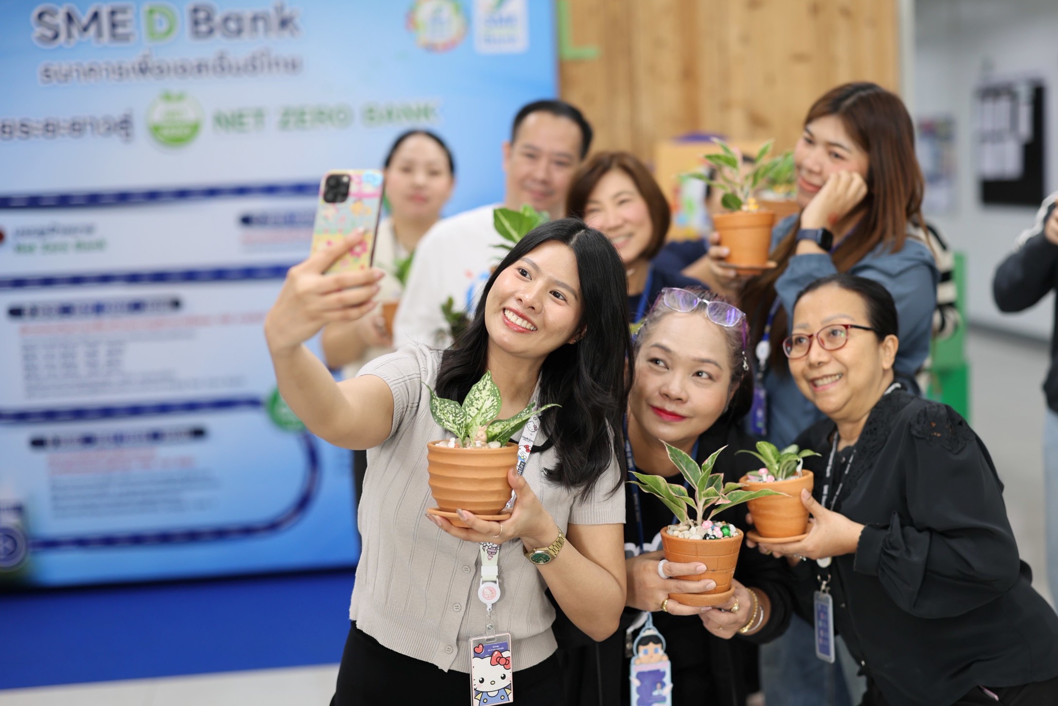 นอกจากนั้น ผู้บริหาร และพนักงาน SME D Bank ร่วมกิจกรรมงาน "วันสิ่งแวดล้อมไทย" ซึ่งตรงกับวันที่ 4 ธันวาคม ของทุกปี เพื่อรณรงค์และสร้างการตระหนักรู้ถึงความสำคัญด้านสิ่งแวดล้อม เดินหน้าด้านการลดก๊าซเรือนกระจกของประเทศไทย ด้วยเป้าหมายลดการปล่อยก๊าซเรือนกระจกสุทธิเป็นศูนย์ (Net Zero) ภายในปี 2050 และจำกัดการเพิ่มขึ้นของอุณหภูมิไม่ให้เกิน 1.5 องศาเซลเซียส รวมถึง แสดงออกถึงเจตนารมณ์อันแน่วแน่ขององค์กรที่ต้องการร่วมดูแลรักษาธรรมชาติและสิ่งแวดล้อม สร้างความยั่งยืนให้แก่โลก ทั้งนี้ ภายในงานมีกิจกรรม เช่น ปลูกต้นไม้ เล่นเกมตอบคำถาม เป็นต้น การแสดงนิทรรศการรณรงค์ประหยัดพลังงาน เป็นมิตรต่อสิ่งแวดล้อม สำหรับการจัดงานดังกล่าว เป็นส่วนหนึ่งของการขับเคลื่อนองค์กรตามหลัก ESG (Environmental , Social and Governance) เพื่อสร้างความสมดุลระหว่างการเติบโตทางธุรกิจควบคู่ไปกับการดูแลสังคมและสิ่งแวดล้อม นำไปสู่การเป็นธนาคารเพื่อการพัฒนาเอสเอ็มอีไทยอย่างยั่งยืน ณ ชั้น 1 อาคาร SME Bank Tower เมื่อวันที่ 4 ธ.ค. 2568