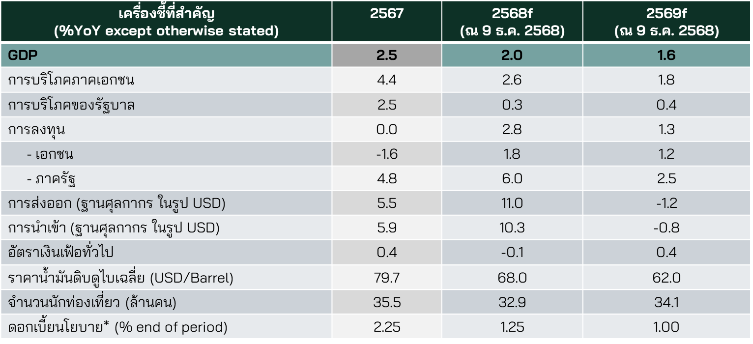 ยุบสภา 11 ธ.ค. 68 ศูนย์วิจัยกสิกรไทยยังคงประมาณการเศรษฐกิจไทยปี 2569 ที่ 1.6% แต่ขึ้นอยู่กับความไม่แน่นอนหลังเลือกตั้ง