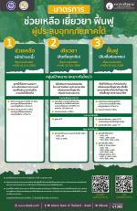 สำหรับมาตรการช่วยเหลือ เยียวยา และฟื้นฟู ผู้ประสบอุทกภัย ตามนโยบายของกระทรวงการคลัง ในการที่จะช่วยเหลือลูกค้าของธนาคารที่มีผลกระทบต่อรายได้และความสามารถในการชำระหนี้ภายหลังจากประสบภัยพิบัติ ครอบคลุม 10 จังหวัด ได้แก่ ชุมพร สุราษฎร์ธานี นครศรีธรรมราช ตรัง พัทลุง สตูล สงขลา ปัตตานี ยะลา และนราธิวาส คณะกรรมการธนาคารได้มีนโยบายเร่งให้ฝ่ายจัดการช่วยเหลือลูกค้าและออกมาตรการสอดรับกับนโยบายรัฐบาลเพื่อบรรเทาภาระทางการเงิน พร้อมเสริมสภาพคล่องให้ลูกหนี้บุคคลและผู้ประกอบการรายย่อยสามารถยืนหยัดและกลับมาฟื้นตัวได้เร็วที่สุด ด้วย 3 มาตรการ ดังนี้