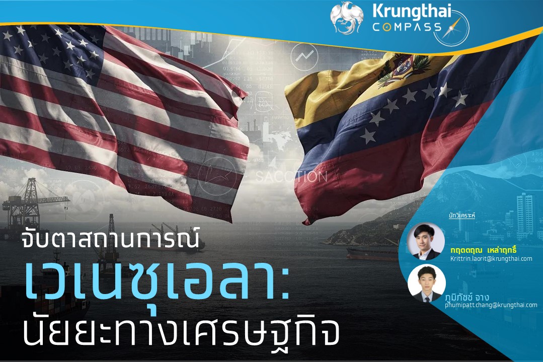 • Krungthai COMPASS ประเมินว่าผลกระทบโดยตรงจากเหตุการณ์ ในเวเนซุเอลาผ่านช่องทางการค้ายังอยู่ในวงจำกัด ขณะที่ผลทางอ้อมจะถูกส่งผ่านมายังราคาพลังงานโลก สะท้อนจากมูลค่าการค้าระหว่างไทยกับเวเนซุเอลาคิดเป็นเพียง 0.01% ของมูลค่าการค้าทั้งหมดของไทย ในปี 67 ทางด้านผลส่งผ่านมายังราคาพลังงานนั้น ประเมินว่าศักยภาพการผลิตน้ำมันของเวเนซุเอลาที่จะเพิ่มขึ้นในระยะยาวเป็นปัจจัยหนุนราคาพลังงานสินค้าโภคภัณฑ์ รวมถึงสินค้าเกษตรในตลาดโลกให้ต่ำลง นอกจากนี้ ความเสี่ยงด้านภูมิรัฐศาสตร์จากการแบ่งขั้วที่แรงขึ้นถือเป็นปัจจัยกดดันการส่งออก