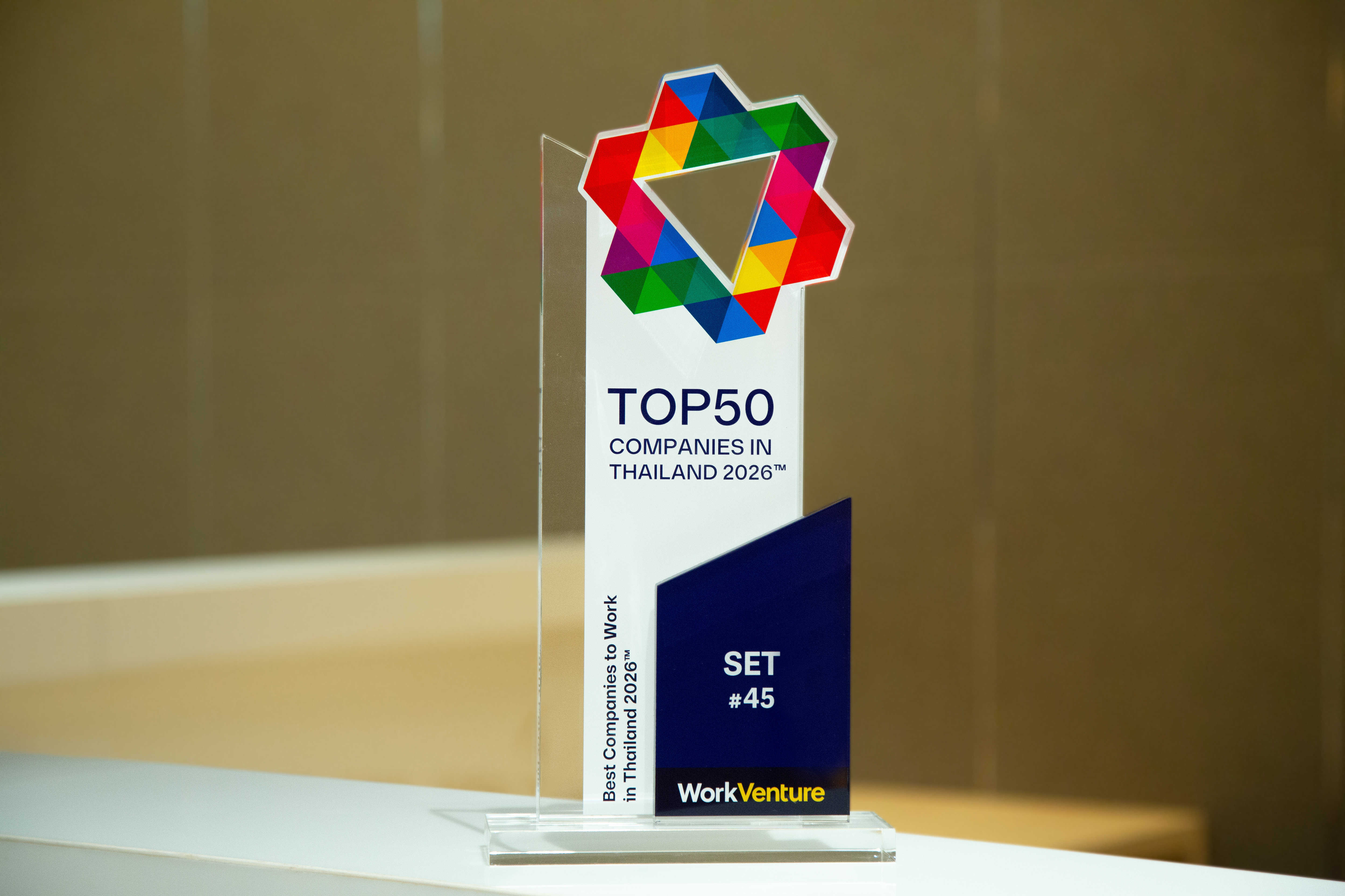 ตลาดหลักทรัพย์แห่งประเทศไทย (SET) ได้รับรางวัล Top 50 Companies in Thailand 2026 จากการจัดอันดับโดย Work Venture ผู้เชี่ยวชาญด้านการสร้างแบรนด์นายจ้างชั้นนำของไทย โดย SET ขยับขึ้นมาอยู่ในอันดับที่ 45 ในปีนี้