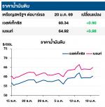 (+) ราคาน้ำมันดิบเวสต์เท็กซัสและเบรนท์ปรับเพิ่มขึ้น ภายหลังตลาดคาดการณ์ว่าอุปทานน้ำมันดิบของคาซัคสถาน จะปรับตัวลดลงชั่วคราวจากการระงับการผลิตที่แหล่งน้ำมัน Tengiz และ Korolev อันเนื่องมาจากเหตุเพลิงไหม้ที่โรงไฟฟ้าในแหล่ง Tengiz ซึ่งส่งผลกระทบต่อระบบจ่ายไฟฟ้าบางส่วนของไซต์งาน นอกจากนี้การส่งออกน้ำมันดิบของคาซัคสถานยังคงเผชิญข้อจำกัดจากปัญหาในการส่งออกและการโจมตีด้วยโดรนต่อโครงสร้างพื้นฐานด้านพลังงานและเรือขนส่งในทะเลดำ สะท้อนจากปริมาณการส่งออกระหว่างวันที่ 1 - 12 ม.ค. 69 ที่ปรับลดลงร้อยละ 35 และปริมาณการผลิตน้ำมันดิบปรับลดลงร้อยละ 50