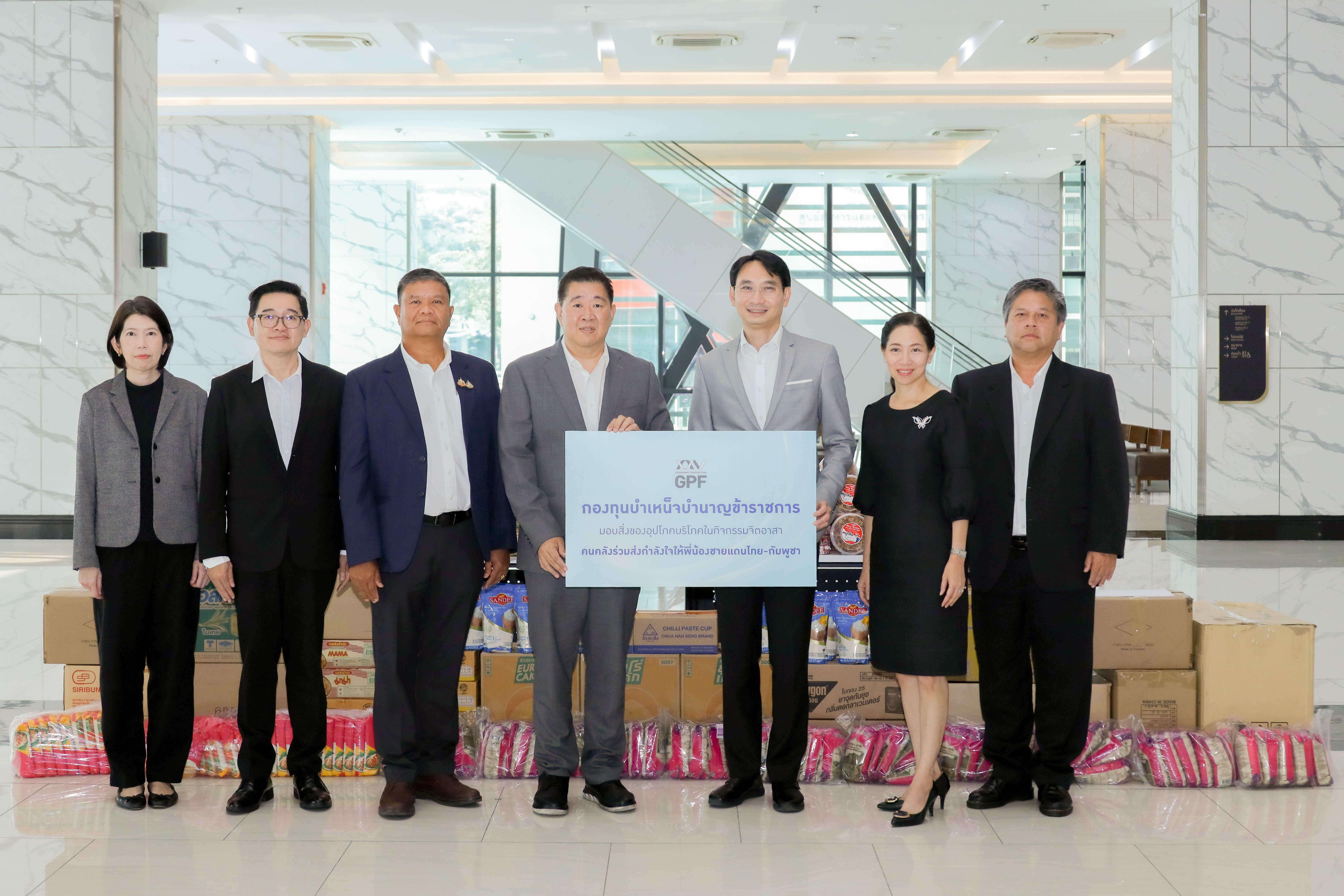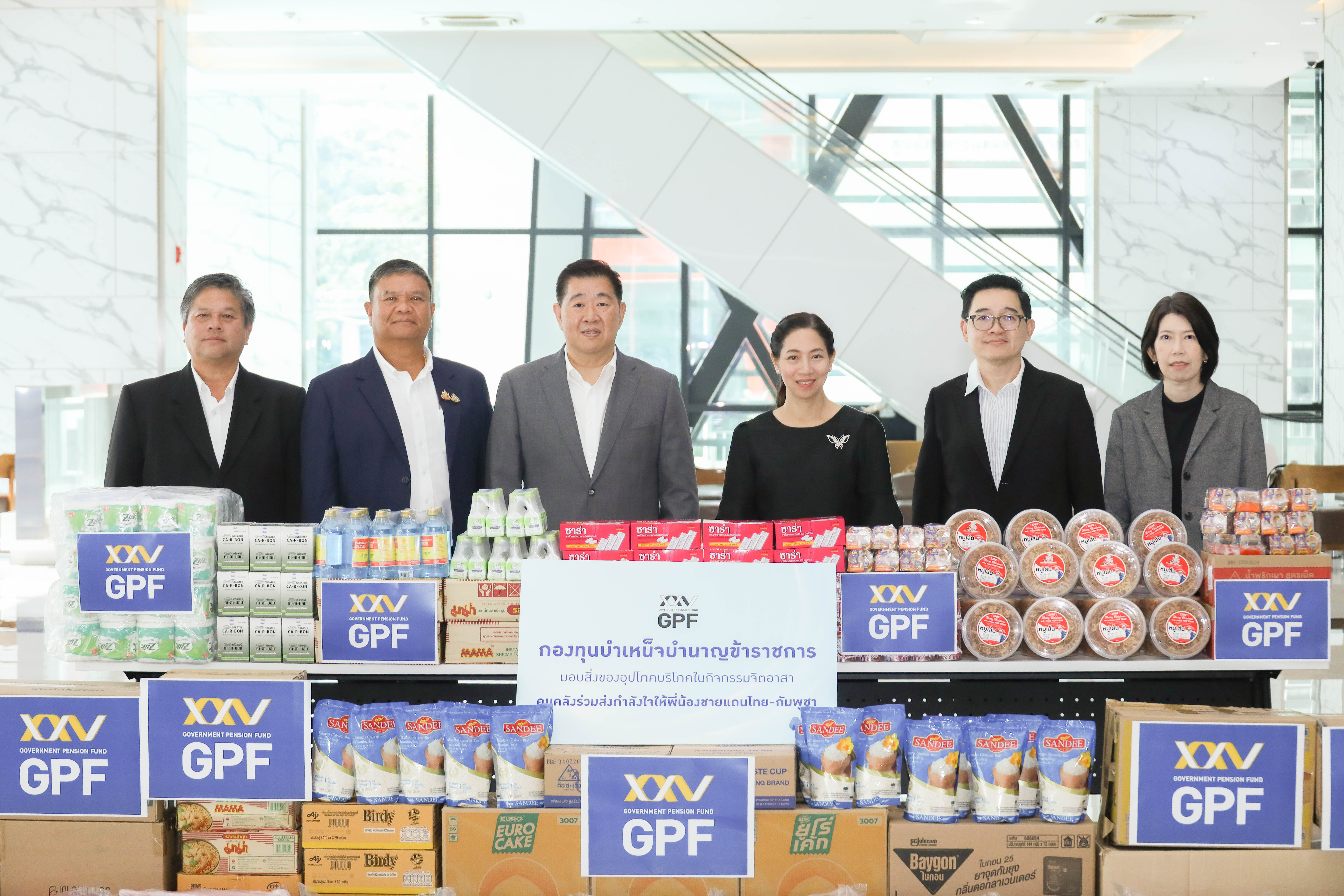นายทรงพล ชีวะปัญญาโรจน์ เลขาธิการคณะกรรมการกองทุนบำเหน็จบำนาญข้าราชการ (กบข.) พร้อมด้วยคณะผู้บริหาร กบข. นำเครื่องอุปโภคบริโภคที่จำเป็น อาทิ ยารักษาโรค ข้าวสาร-อาหารแห้ง มาร่วมกิจกรรมจิตอาสา “คนคลังร่วมส่งกำลังใจให้พี่น้องชายแดนไทย-กัมพูชา” เพื่อร่วมสนับสนุนภารกิจกระทรวงการคลัง ส่งมอบกำลังใจในการปฏิบัติภารกิจทางทหาร และประชาชนที่ได้รับผลกระทบ จากสถานการณ์ชายแดนไทย–กัมพูชา โดยมีนายปิ่นสาย สุรัสวดี รองปลัดกระทรวงการคลัง และนางสาวอมรรัตน์ จารุรัตน์ ผู้ช่วยปลัดกระทรวงการคลัง เป็นผู้รับมอบ ณ กระทรวงการคลัง