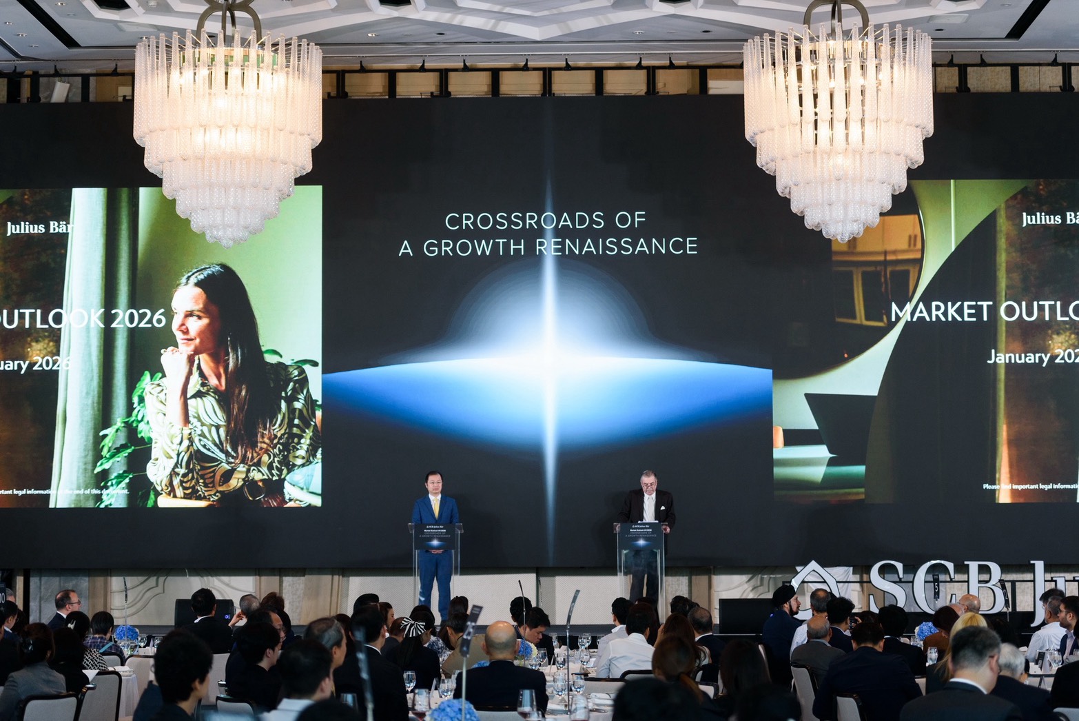 บริษัทหลักทรัพย์ ไทยพาณิชย์ จูเลียส แบร์ จำกัด (SCB Julius Baer) จัดงานสัมมนาเอ็กซ์คลูซีฟ “มุมมองเศรษฐกิจโลกช่วงครึ่งแรกของปี 2569” (Market Outlook H1/2026) ภายใต้หัวข้อ "Crossroads of a Growth Renaissance" สำหรับลูกค้าที่มีความมั่งคั่งระดับสูง นำเสนอปัจจัยสำคัญที่มีผลต่อการลงทุนในช่วงครึ่งปีแรก โดยจูเลียส แบร์ ให้มุมมองว่าภาพรวมเศรษฐกิจโลกและการลงทุนปีนี้จะเป็นปีแห่งการ “ปรับสมดุลและตั้งต้นใหม่ (Resetting and Rebalancing)” ของระบบการเงินโลก โดยหนึ่งในจุดเปลี่ยนสำคัญคือการแต่งตั้งประธานธนาคารกลางสหรัฐฯ (Federal Reserve) คนใหม่ สะท้อนการเปลี่ยนผ่านด้านผู้นำนโยบายการเงินของสหรัฐฯ ขณะเดียวกัน ความแตกต่างเชิงนโยบายระหว่างสหรัฐฯ ยุโรป และจีน กำลังทวีความชัดเจนมากขึ้น ส่งผลให้นักลงทุนจำเป็นต้องทบทวนและจัดสรรการลงทุนในแต่ละภูมิภาคอย่างรอบคอบมากกว่าเดิม ภายในงานได้รับเกียรติจาก นายเอเดรียน เมซซินาวเออร์ ประธานเจ้าหน้าที่บริหาร และนายคีน ตัน ผู้ช่วยกรรมการผู้จัดการอาวุโส ผู้บริหารฝ่ายการแนะนำการลงทุน บริษัทหลักทรัพย์ ไทยพาณิชย์ จูเลียส แบร์ จำกัด พร้อมด้วย นายมาร์ค แมทธิว หัวหน้าฝ่ายวิจัยเอเชียแปซิฟิก นายหลุยส์ ชัว นักวิเคราะห์ ฝ่ายวิจัยภูมิภาคเอเชีย ธนาคารจูเลียส แบร์ และ นายเรย์ เจีย หัวหน้าฝ่ายวิจัย (ภูมิภาคเอเชียแปซิฟิก ไม่รวมประเทศอินเดีย) และรองหัวหน้าฝ่ายส่งเสริมการค้า (ประเทศจีน) สภาทองคำโลก ร่วมงานสัมมนา เมื่อเร็วๆ นี้ ณ โรงแรมดุสิตธานี กรุงเทพฯ