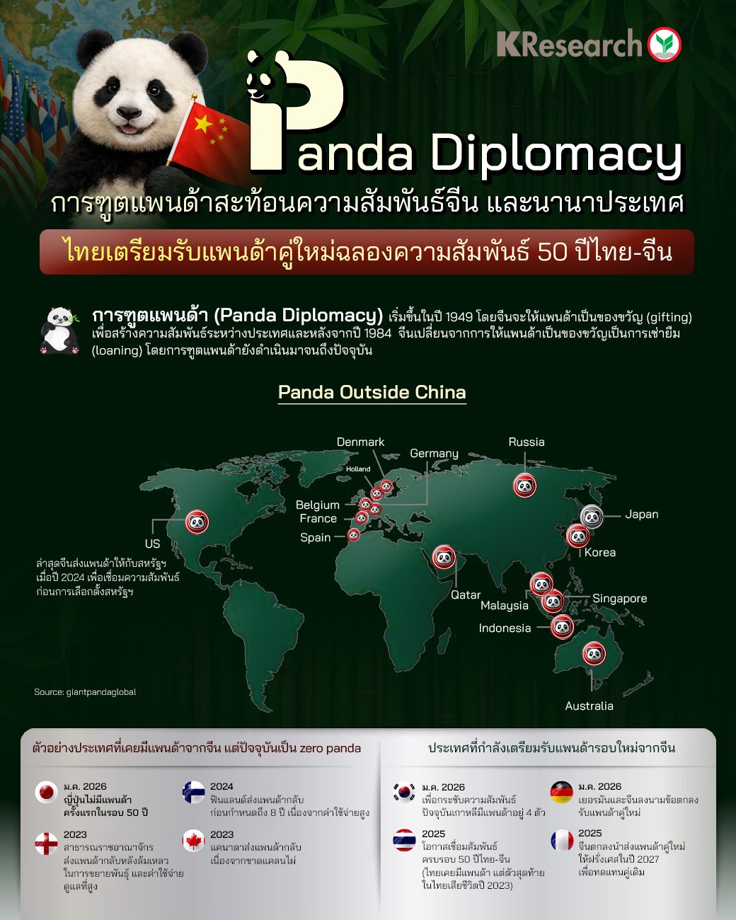ศูนย์วิจัยกสิกรไทยวิเคราะห์ "Panda Diplomacy การฑูตแพนด้าสะท้อนความสัมพันธ์จีน และนานาประเทศ"