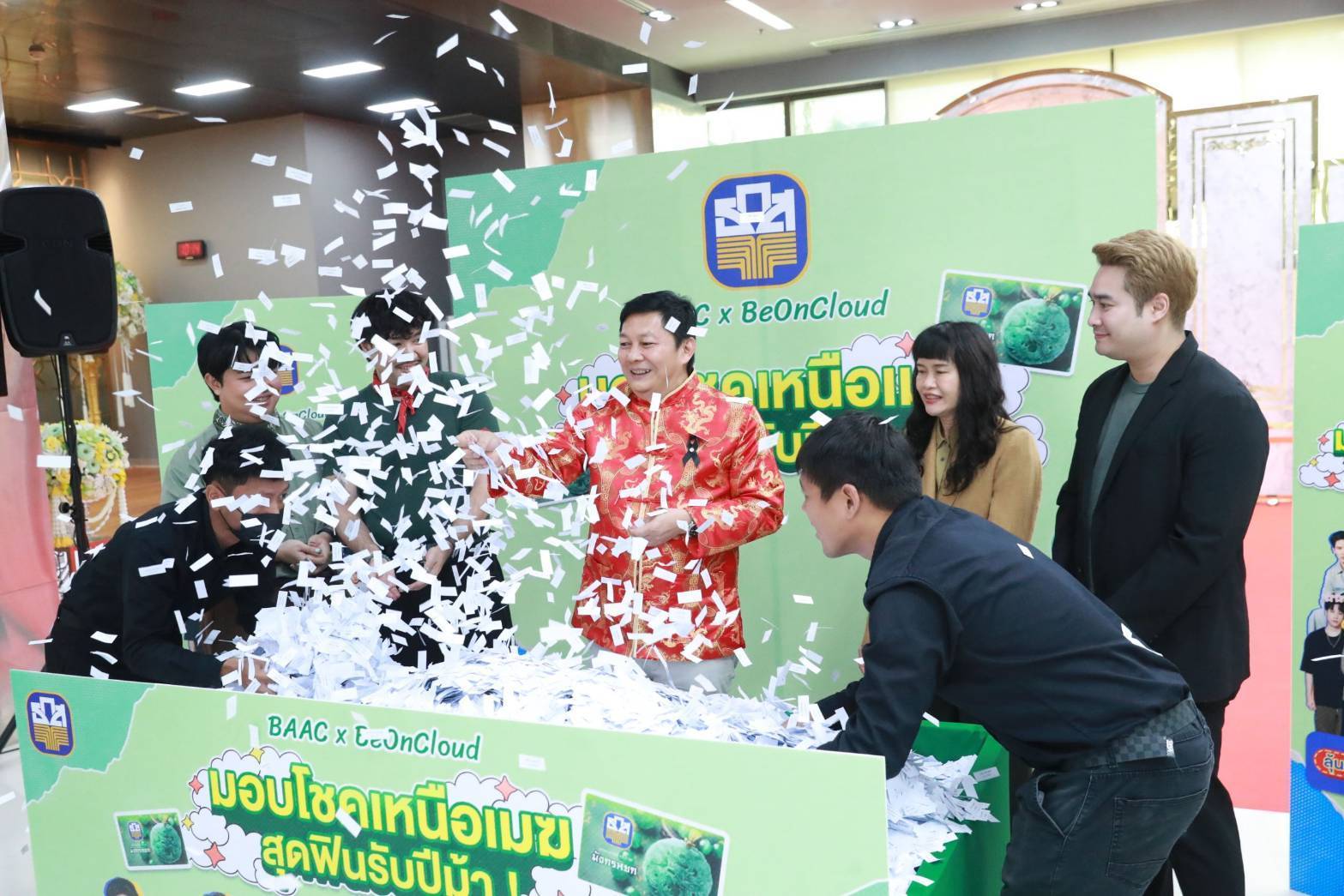 นายไพศาล หงษ์ทอง รองผู้จัดการธนาคารเพื่อการเกษตรและสหกรณ์การเกษตร (ธ.ก.ส.) เป็นประธานในการจับรางวัลแจกภาพถ่ายโพราลอยด์ของศิลปิน ในสังกัด Be On Cloud ให้แก่ลูกค้าที่ฝากสลากออมทรัพย์ ธ.ก.ส. ชุดมังกรหยก ในกิจกรรม "มังกรหยกมอบโชคเหนือเมฆ สุดฟินรับปีม้า" จำนวน 48 รางวัล ซึ่งเปิดให้เข้าร่วมกิจกรรมตั้งแต่วันที่ 10 – 31 มกราคม 2569 ที่ผ่านมา โดยกิจกรรมดังกล่าวได้รับเสียงตอบรับเป็นอย่างดีจากแฟนคลับของศิลปินค่าย Be On Cloud และลูกค้าทั่วไป ทำให้มียอดผู้เข้าร่วมกิจกรรม จำนวน 1,236 ราย และมีจำนวนสิทธิ์ที่ลงทะเบียน ลุ้นรางวัลจำนวนกว่า 1.1 ล้านสิทธิ์ โดย ธ.ก.ส. จะมีการประกาศรายชื่อผู้โชคดีทาง LINE Official Account BAAC Family (@baacfamily) และ Facebook : ธกส BAAC Thailand ในวันที่ 18 กุมภาพันธ์ 2569 ต่อไป