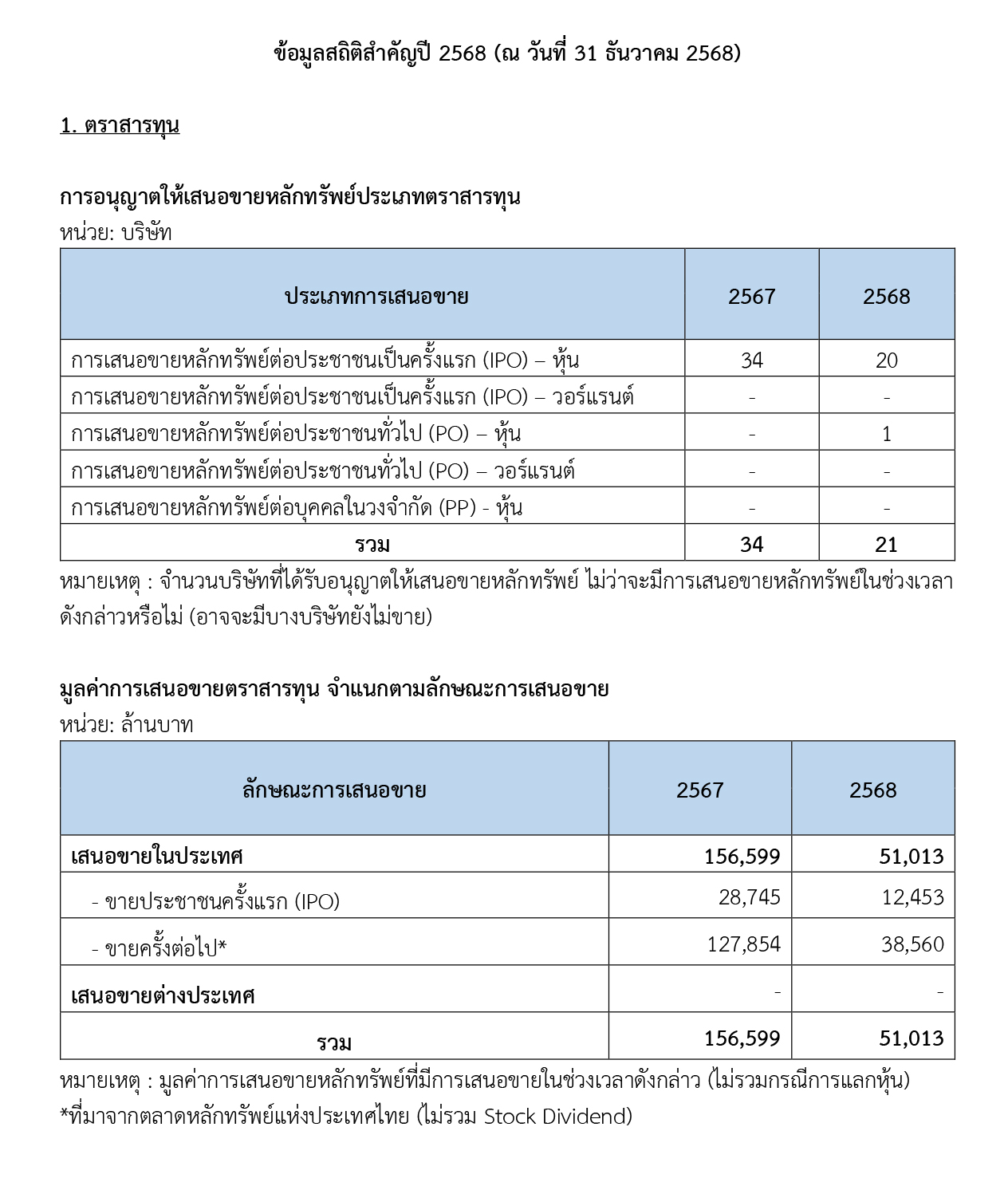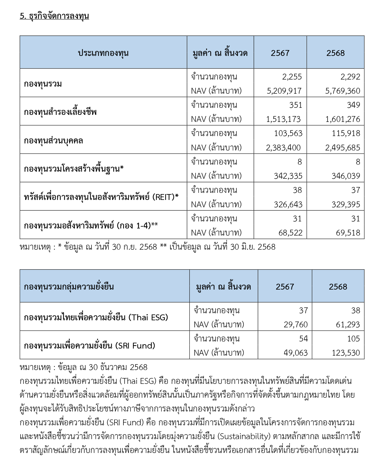 ก.ล.ต. สรุปสถิติสำคัญปี 68 ชี้ผลิตภัณฑ์การลงทุนในกลุ่มความยั่งยืนได้รับความสนใจเพิ่มขึ้นต่อเนื่อง ทั้งตราสารหนี้และกองทุนรวม
