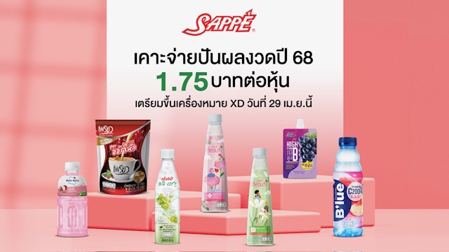 แม้ภาพรวมเศรษฐกิจปี 2568 ชะลอตัวจากปัจจัยท้าทายรอบด้านทั้งในและต่างประเทศ แต่บอกเลยว่า บมจ.เซ็ปเป้ หรือ SAPPE ยังมุ่งมั่นและรับมือได้อย่างน่าพอใจ สะท้อนถึงการบริหารจัดการที่มีประสิทธิภาพ โดยทำรายได้จากการขาย 5,252.6 ล้านบาท และกำไรสุทธิที่ 776.2 ล้านบาท ล่าสุด บอร์ดอนุมัติจ่ายเงินปันผลงวดปี 2568 ในอัตรา 1.75 บาทต่อหุ้น คิดเป็นจำนวนเงินรวมทั้งสิ้น 539.5 ล้านบาท โดยเตรียมขึ้นเครื่องหมาย XD ในวันที่ 29 เมษายน 2569 และกำหนดรายชื่อผู้ถือหุ้น (Record Date) ในวันที่ 30 เมษายน 2569 พร้อมรับเงินปันผลเข้าพอร์ตในวันที่ 21 พฤษภาคมนี้ เรียกว่าถึงแม้ปีนี้ ผลงานอาจไม่หวือหวาตามสภาพตลาดที่ชะลอตัว แต่การ "ตอบแทนผู้ถือหุ้น" ต้องยกให้เป็นที่หนึ่ง งานนี้ ‘ปิยจิต รักอริยะพงศ์’ ซีอีโอหญิงแห่ง SAPPE ขอบคุณทุกความไว้วางใจ พร้อมเดินหน้ายุทธศาสตร์ผลักดันแบรนด์ไทยสู่การเป็น Global Brand อย่างยั่งยืน ซึ่งถือเป็นเป้าหมายหลักในการสร้างการเติบโตในระยะยาว เห็นความมุ่งมั่นแบบนี้แล้ว แฟนคลับ SAPPE สบายใจหายห่วง
