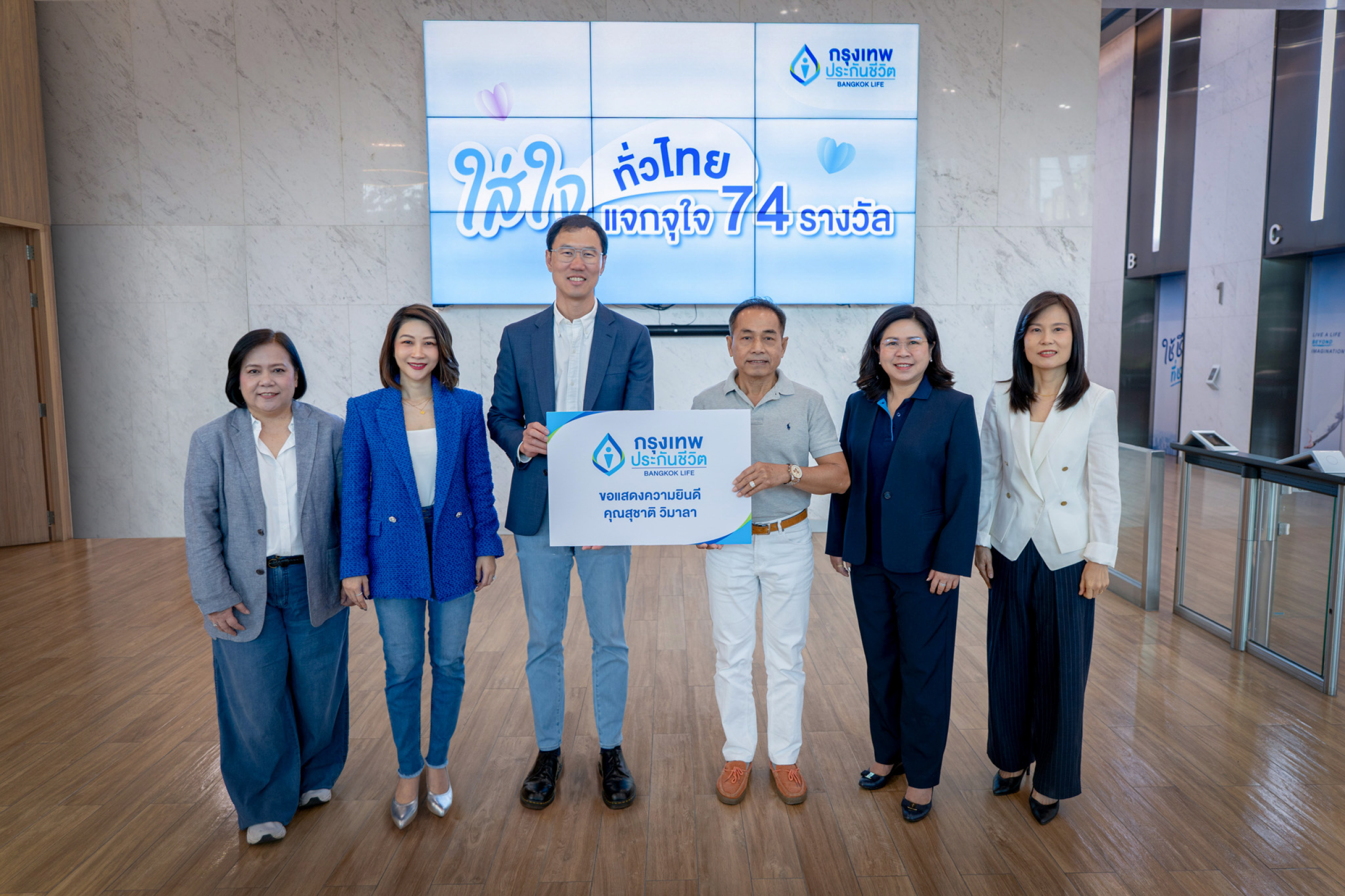 กรุงเทพประกันชีวิต เดินหน้าสร้างประสบการณ์การตลาดที่แตกต่าง เนื่องในโอกาสฉลองครบรอบ 74 ปี ด้วยการจัดแคมเปญ "ใส่ใจทั่วไทย แจกจุใจ 74 รางวัล" มอบรางวัลใหญ่ รถยนต์ไฟฟ้า Volvo รุ่น EX30 Ultra - Twin Motor Performance สี Cloud Blue พร้อมอุปกรณ์ชาร์จไฟ จำนวน 1 รางวัล รวมมูลค่า 1,540,000 บาท ให้แก่ผู้โชคดี นายสุชาติ วิมาลา เพื่อสะท้อนแนวคิดการเติบโตอย่างยั่งยืน พร้อมตอกย้ำภาพลักษณ์การเป็นบริษัทประกันชีวิตอันดับหนึ่งในด้านความใส่ใจ โดยมี นายโชน โสภณพนิช กรรมการผู้จัดการใหญ่และประธานเจ้าหน้าที่บริหาร นางสาวอรนาฎ นชะพงษ์ ผู้ช่วยผู้จัดการใหญ่ สายกลยุทธ์การตลาดและบริหารจัดการลูกค้า นางลัดดาวัลย์ สิทธิวรนันท์ ผู้ช่วยผู้จัดการใหญ่ สายช่องทางสถาบันการเงินและพันธมิตรทางธุรกิจ พร้อมคณะผู้บริหารจากธนาคารกรุงเทพ ร่วมแสดงความยินดี ณ บริษัท กรุงเทพประกันชีวิต จำกัด (มหาชน) สำนักงานใหญ่