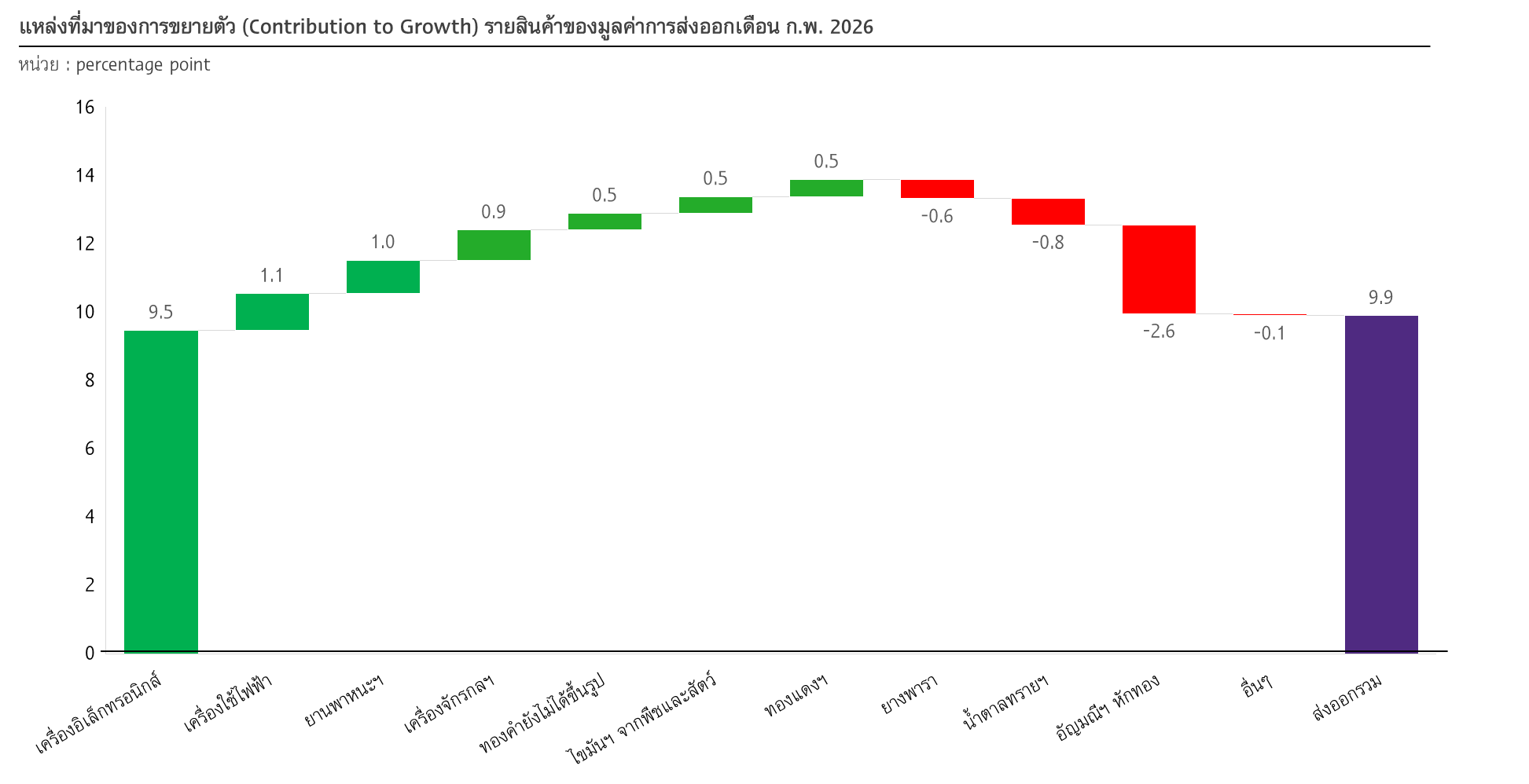 รูปที่ 2 : สินค้าอิเล็กทรอนิกส์ยังเป็นสินค้าส่งออกหลักในเดือน ก.พ. 2026