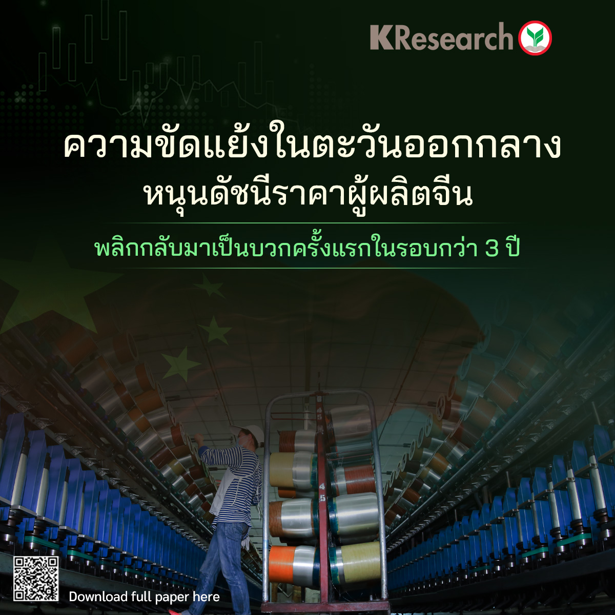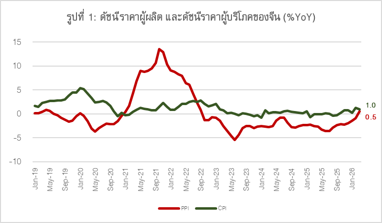 การพลิกตัวเป็นบวกของดัชนีราคาผู้ผลิตจีนเกิดจากการปรับเพิ่มขึ้นของราคาสินค้าโภคภัณฑ์เป็นสำคัญ โดยราคาน้ำมัน WTI เพิ่มขึ้นกว่า 100% ตั้งแต่ช่วงต้นปี 2026 ซึ่งจะส่งผลกระทบต่อเนื่องไปยังราคาสินค้าโภคภัณฑ์อื่น ๆ เช่น ถ่านหิน รวมถึงวัตถุดิบต่าง ๆ ที่จะปรับขึ้นต่อเนื่อง ต้นทุนการผลิตที่สูงขึ้นจะกดดันรายได้ของผู้ผลิตในจีนในระยะต่อไป