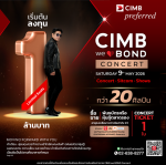 ธนาคาร ซีไอเอ็มบี ไทย เดินหน้าตอกย้ำบทบาทผู้นำตลาดตราสารหนี้ของคนไทย กลับมาอีกครั้งกับคอนเสิร์ตที่ยิ่งใหญ่กว่าเดิม เพิ่มเติมศิลปินและสีสันของการแสดงบนเวที "CIMBweBOND Concert" เพื่อมอบประสบการณ์พิเศษให้แก่ลูกค้าของธนาคารที่ลงทุนในผลิตภัณฑ์หุ้นกู้คุณภาพดีที่ธนาคารคัดสรร