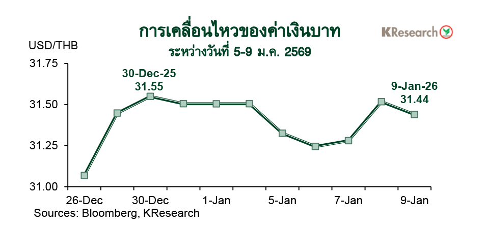 เงินบาทแข็งค่าขึ้นในช่วงต้นสัปดาห์ตามการปรับตัวขึ้นของราคาทองคำในตลาดโลกซึ่งได้รับอานิสงส์จากประเด็นความขัดแย้งระหว่างสหรัฐฯ และเวเนซุเอลา อย่างไรก็ดี เงินบาทลดช่วงบวกและเริ่มทยอยอ่อนค่าลงในช่วงระหว่างสัปดาห์สอดคล้องกับการย่อตัวลงของราคาทองคำในตลาดโลก