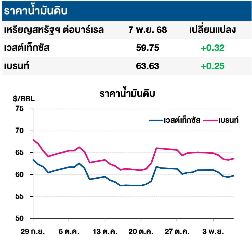 ราคาน้ำมันดิบเวสต์เท็กซัสและเบรนท์ฟื้นตัว หลังตลาดคาดหวังว่าสหรัฐฯ อาจพิจารณาผ่อนปรนมาตรการคว่ำบาตรให้ฮังการีสามารถนำเข้าน้ำมันดิบจากรัสเซียได้ต่อไป ภายหลังการประชุมระหว่างประธานาธิบดีโดนัลด์ ทรัมป์กับนายกรัฐมนตรีฮังการีที่ทำเนียบขาว